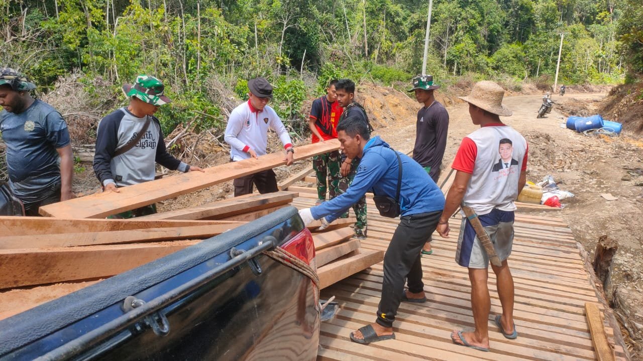 “Hari ini kami fokus pada penurunan kayu sebagai material utama jembatan. Alhamdulillah, masyarakat sangat antusias dan membantu secara sukarela, mempercepat distribusi ke titik pembangunan,” ujar Lettu Sabban.