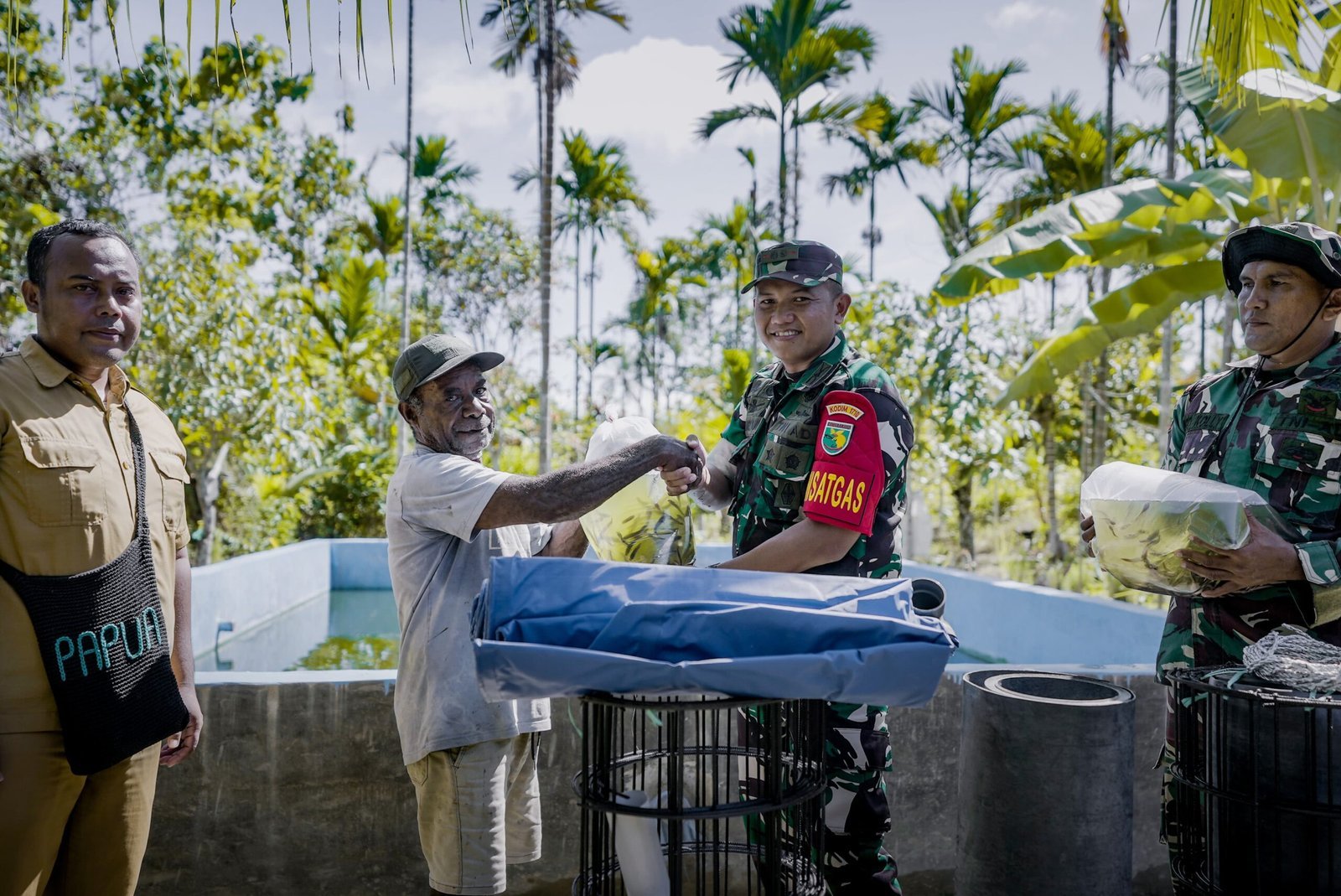 Satuan Tugas (Satgas) TNI Manunggal Membangun Desa (TMMD) kembali menunjukkan kepeduliannya kepada masyarakat. Dalam rangka mendukung Program Unggulan Kepala Staf Angkatan Darat (Kasad), Satgas TMMD memberikan bantuan berupa kolam ikan dan bibit lele kepada warga di Kampung Naena Muktipura, Distrik Iwaka, Kab. Mimika. Rabu, (14/5/2025)
