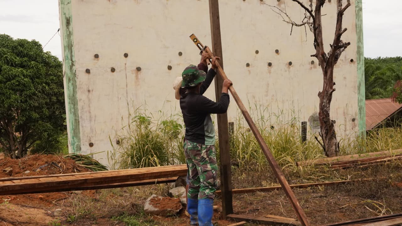 Kotawaringin Timur – Kepedulian anggota Satgas TNI Manunggal Membangun Desa (TMMD) Reguler ke-127 Kodim 1015/Sampit kembali ditunjukkan dengan membantu warga mendirikan tiang rumah di Desa Tribuana, Kecamatan Antang Kalang, Kabupaten Kotawaringin Timur, pada Kamis (12/02/2026). Bantuan ini diberikan ketika para personel Satgas TMMD sedang melaksanakan pembangunan siring jalan di desa tersebut.
