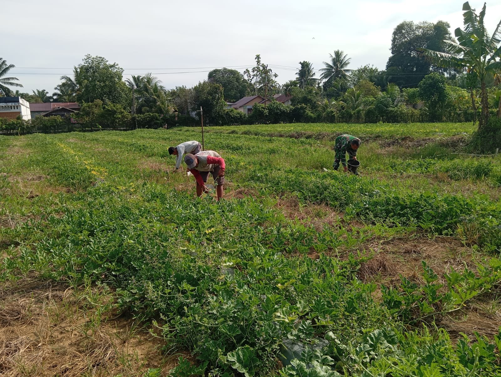 Aceh Barat – Upaya memperkuat ketahanan pangan terus dilakukan oleh Satgas TMMD Reguler ke-127 Kodim 0105/Abar. Tidak hanya membangun infrastruktur desa, personel Satgas juga terlibat langsung dalam pengembangan sektor pertanian bersama masyarakat Desa Pasi Aceh, Kecamatan Woyla.