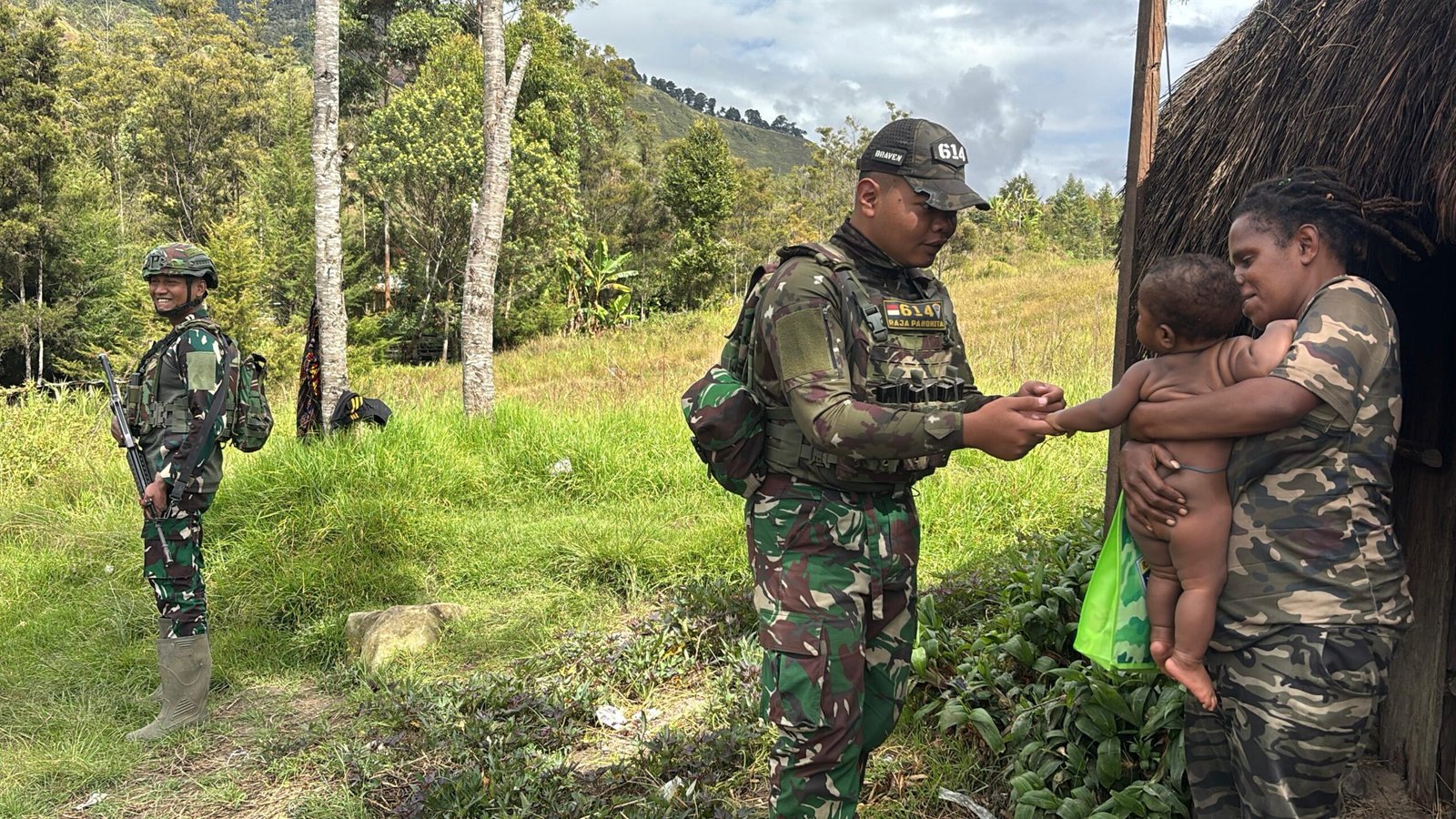 LANNY JAYA – Sebagai wujud kepedulian terhadap sesama, Personel Pos Malagai Satgas Yonif 614/RJP dipimpin oleh Sertu Irvan beserta beberapa personel Pos Malagai memberikan bantuan kepada salah satu warga Kampung Numbokawi. Bantuan berupa sembako diserahkan kepada keluarga Mama Melisa Kiwo (43) yang tinggal di Desa Numbokawi, Distrik Malagai, Kabupaten Lanny Jaya, Papua Pegunungan, Rabu (09/7/2025).