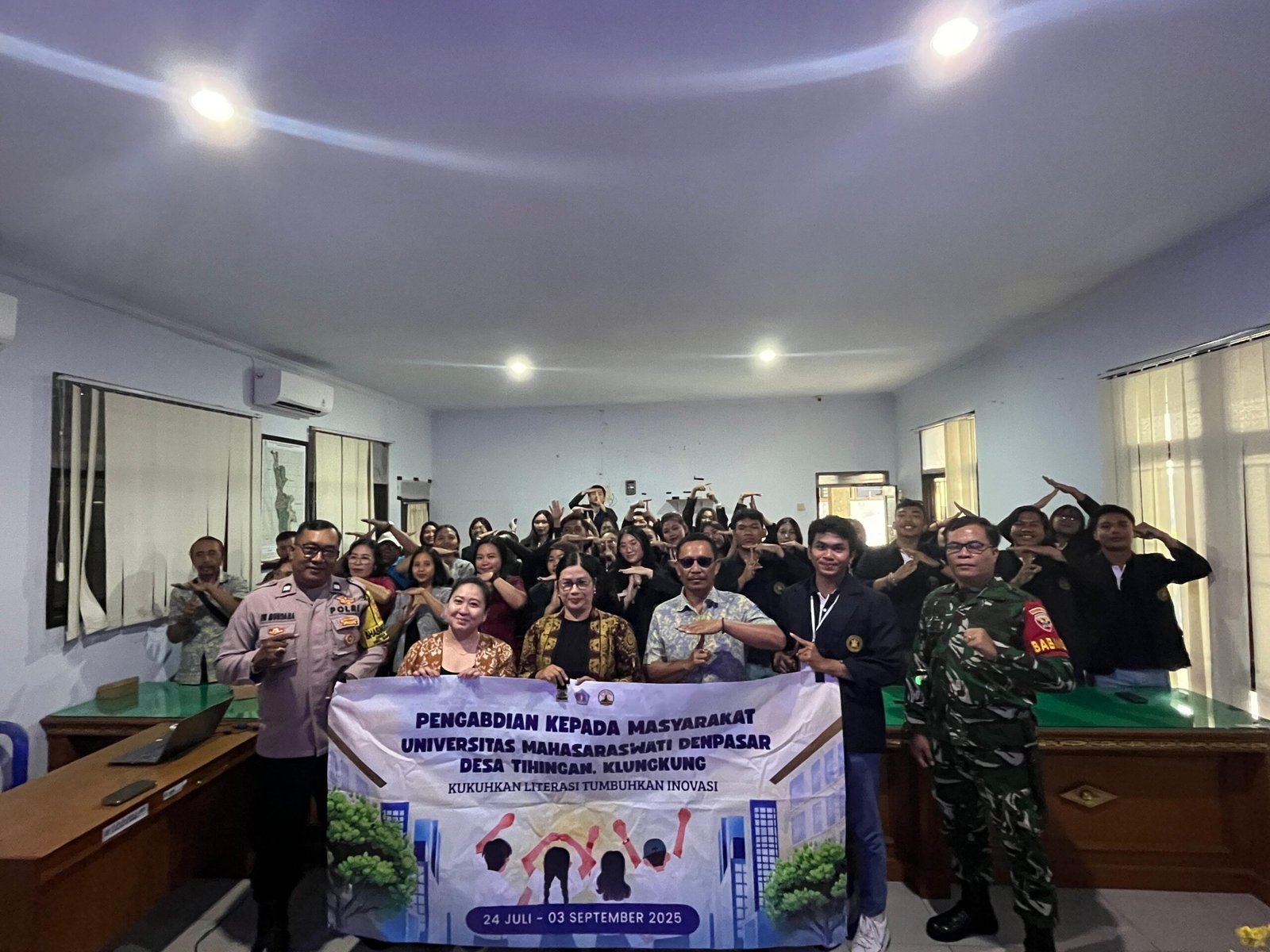 Klungkung,- Aktif dan berupaya optimal untuk memberikan kontribusi dalam berbagai kegiatan di wilayah binaan, Babinsa Tihingan Koramil 1610-02/Banjarangkan Sertu Putu Agustana menghadiri kegiatan pelepasan mahasiswa KKN Universitas Mahasaraswati Denpasar, Selasa ( 26/08/25 )..
