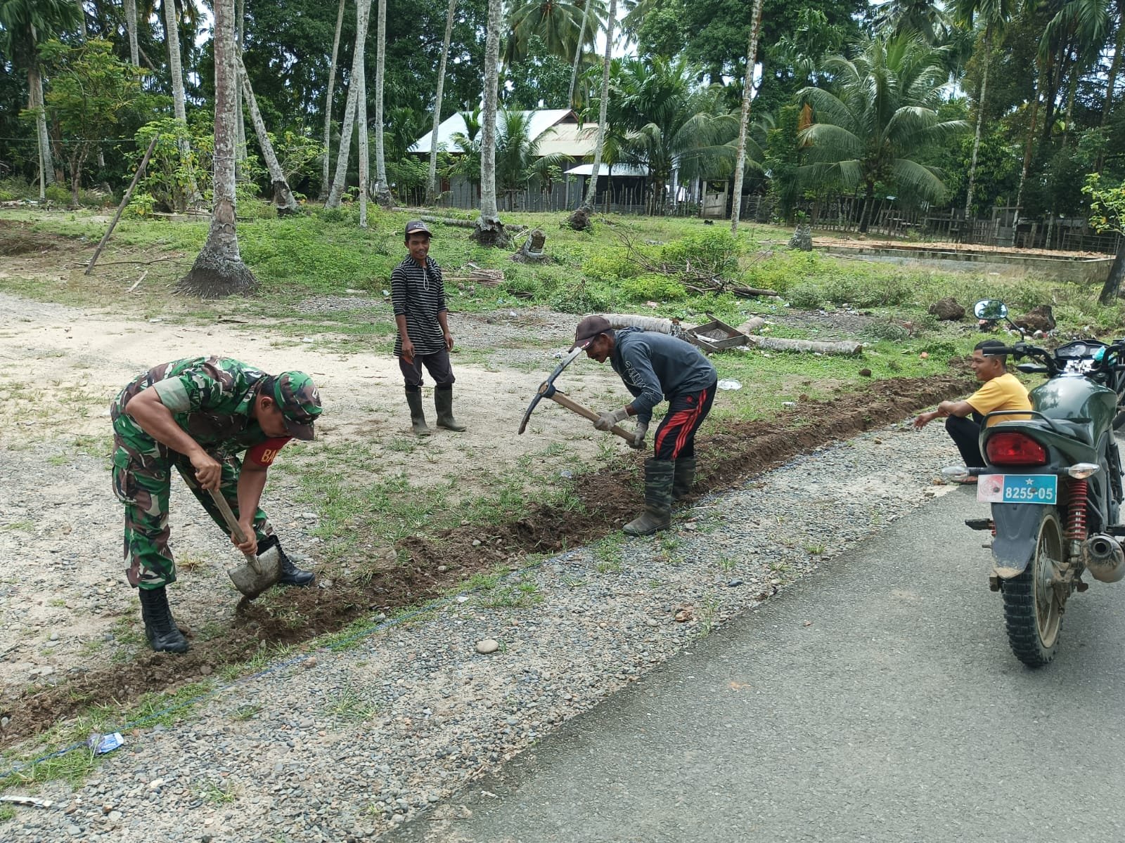 Aceh Jaya – Tidak mengurangi semangat Aparat Komando Kewilayahan untuk tetap melakukan kegiatan Karya bakti bersama warganya. Seperti yang dilakukan Serda M Ambri Babinsa Koramil 0114-05/Panga ketika melaksanakan karya bakti gotong-royong menggali parit bersama masyarakat, bertempat di Desa Panton Kecamatan Panga Kabupaten Aceh Jaya, Minggu (02/03/2025).