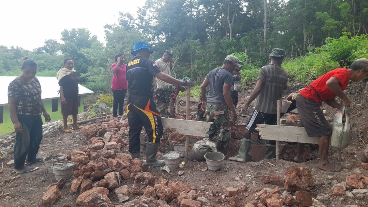 NTT-KEFAMENANU., Pemandangan luar biasa tergambar di lokasi TNI Manunggal Membangun Desa (TMMD) ke-123 Kodim 1618/TTU, tepatnya di SDN Lanaus, Desa Lanaus, Kecamatan Insana Tengah, pada Sabtu (15/03/2025). Di bawah terik matahari, para prajurit TNI bersama warga bahu-membahu, bergotong-royong mengangkat semen menggunakan ember demi menyelesaikan pembangunan bak air yang sangat dinantikan masyarakat.