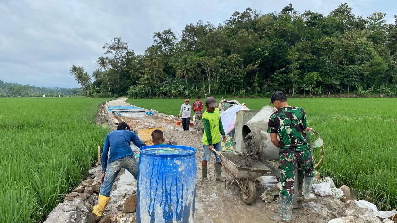 Pesawaran — Pada hari pertama bulan suci Ramadhan, Satgas TNI Manunggal Membangun Desa (TMMD) ke-127 dari Kodim 0421/Lampung Selatan menunjukkan komitmen yang tinggi dengan melanjutkan pembangunan talud di Desa Tanjung Rejo, Kabupaten Pesawaran. Pembangunan talud ini merupakan salah satu sasaran fisik utama dalam program TMMD, yang bertujuan untuk memperkuat struktur jalan serta mencegah terjadinya longsor di sisi akses warga.