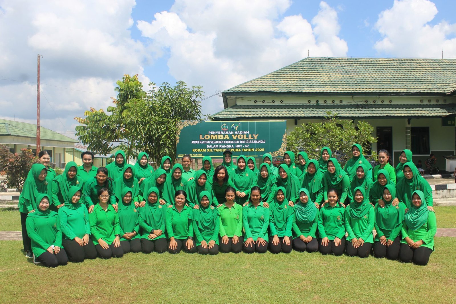 Lamandau – Dalam rangka memeriahkan Hari Ulang Tahun (HUT) Kodam ke-76, ibu-ibu Persit Kartika Chandra Kirana cabang XLIV Kodim 1017/Lmd menggelar lomba bola voli yang berlangsung meriah di lapangan Makodim 1017/Lmd, Kamis (3/7/2025).