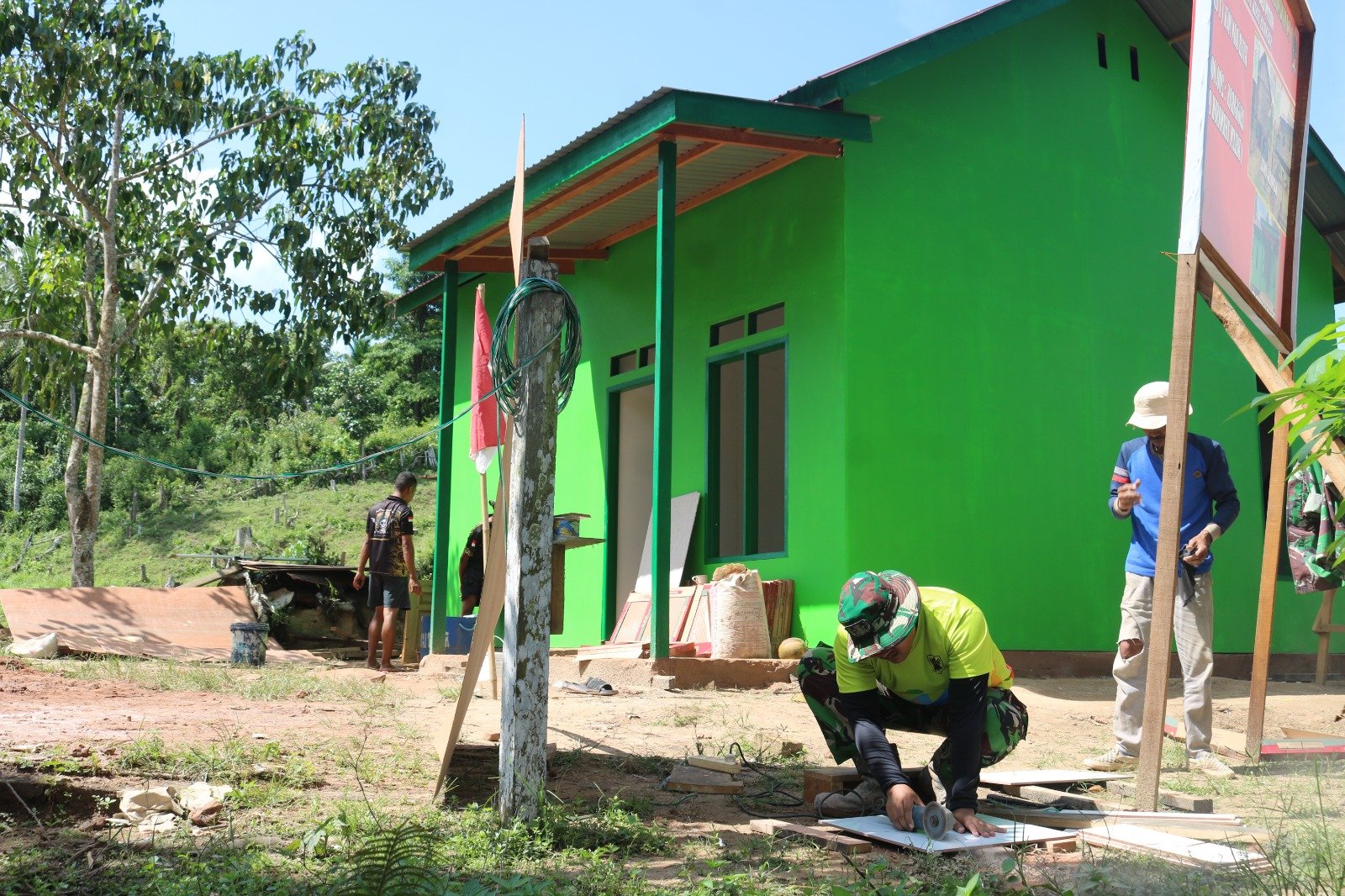 Meski belum rampung sepenuhnya, keindahan rumah tersebut sudah mulai memancar. Dinding yang dulunya lapuk dan kusam kini berganti dengan tembok kokoh bercat hijau segar. Bagian atap pun telah diperkuat, siap melindungi pemiliknya dari hujan maupun panas.