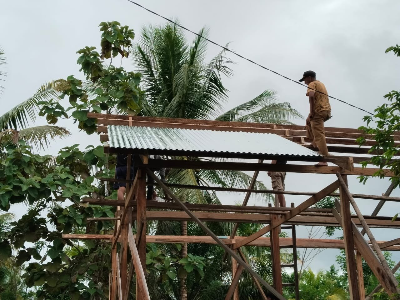 Kegiatan hari ini difokuskan pada pemasangan rangka dan penutup atap rumah sebagai bentuk percepatan penyelesaian hunian layak bagi Ibu Tina, Para personel Satgas bersama warga saling bahu membahu dalam proses ini, memperlihatkan semangat gotong royong yang menjadi ciri khas TMMD.