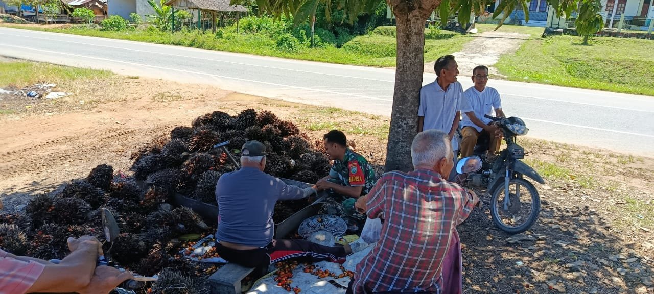 ACEH JAYA – Dalam rangka mempererat hubungan dengan masyarakat dan menggali informasi terkait sektor ekonomi lokal, Babinsa Koramil 03 Setia Bakti, jajaran Kodim 0114/Aceh Jaya, Sersan Dua (Serda) Zainal Aripin, melaksanakan Komunikasi Sosial (Komsos) dengan Bapak Rahmat (52 tahun), seorang pengumpul berondolan sawit di Desa Lhok Geleumpang, Kecamatan Setia Bakti, Kabupaten Aceh Jaya, Kamis (18/09).