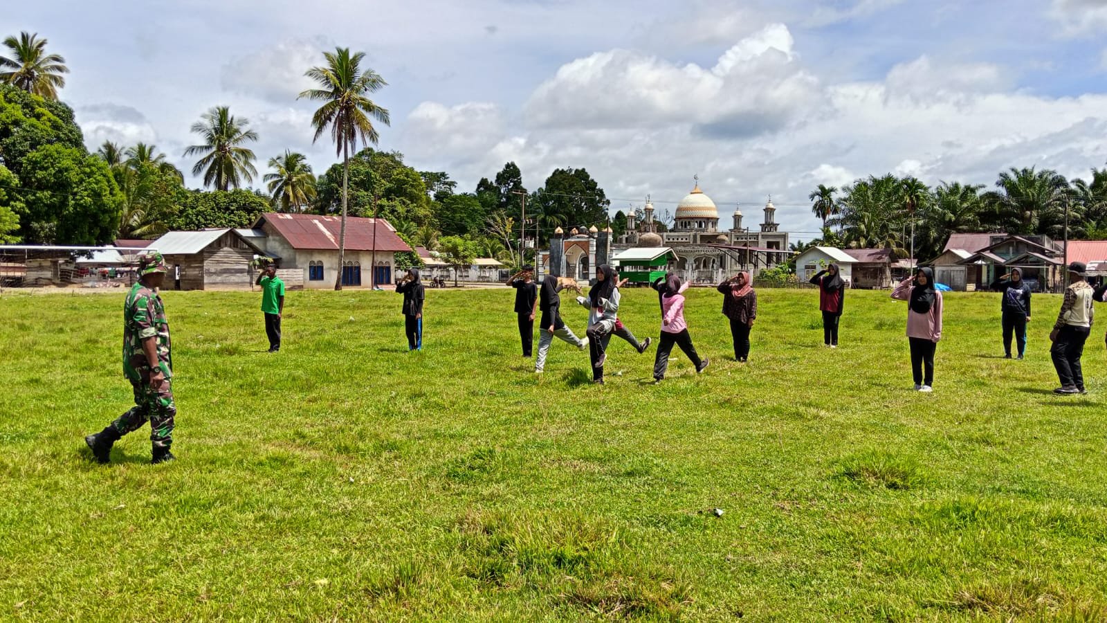 ACEH JAYA – Dalam rangka mempersiapkan generasi muda untuk peringatan hari besar nasional, anggota Posramil Pasie Raya Kodim 0114/Aceh Jaya, Sertu Arapik, bersama dengan anggota Pospol Brigpol Dasrol, melaksanakan kegiatan pelatihan Pasukan Pengibar Bendera (Paskibra) tingkat Kecamatan Pasie Raya. Pelatihan ini dipusatkan di lapangan bola kaki Desa Tuwi Kareung, Kecamatan Pasie Raya, Kabupaten Aceh Jaya, Jumat (25/07).