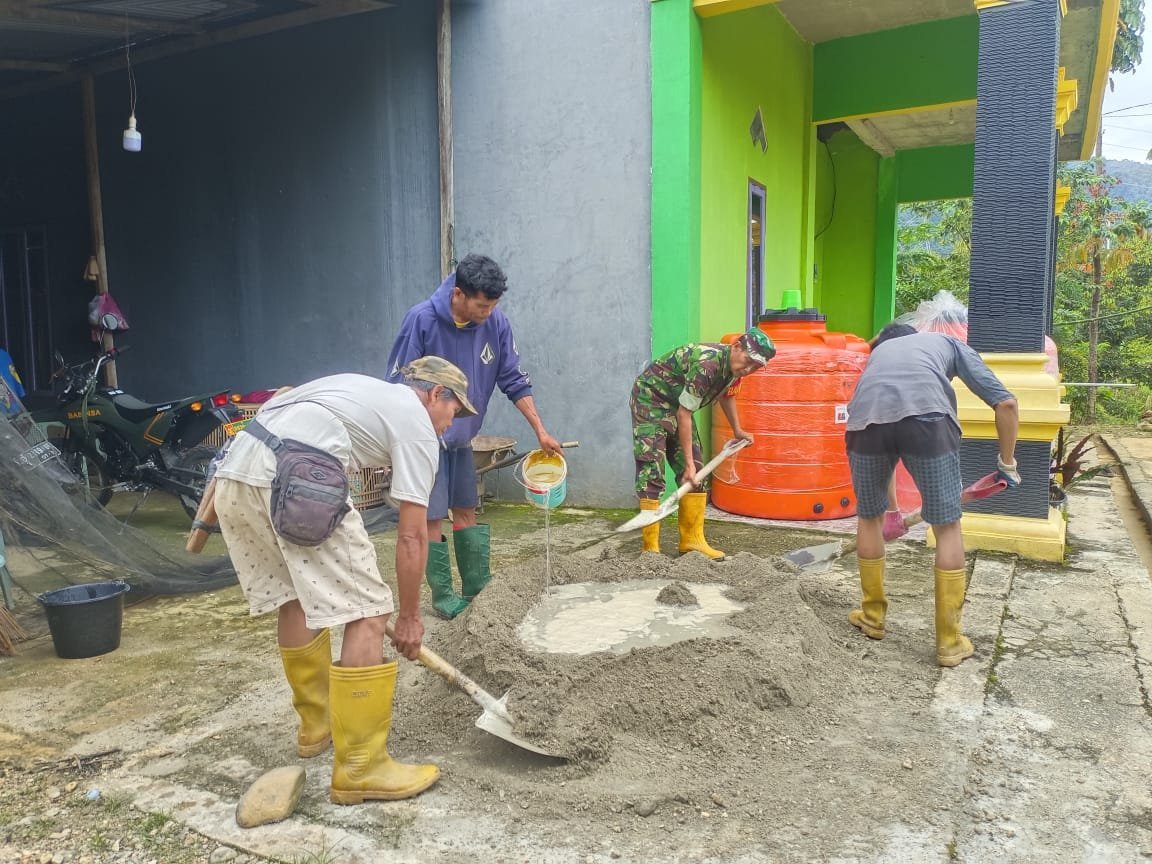 Kodim Poso, – Dalam rangka meningkatkan hubungan antara TNI dan masyarakat, Sertu Duniawan, anggota Koramil 1307-11/Pamona Tenggara, melaksanakan kegiatan komunikasi sosial (komsos) bersama warga binaannya. Kegiatan ini berlangsung di Desa Tolambo, Kecamatan Pamona Tenggara, Kabupaten Poso, dan bertujuan untuk membantu pengecoran tempat tong air milik Bapak Kasman, salah satu warga setempat. Jumat, (17/1/2025).