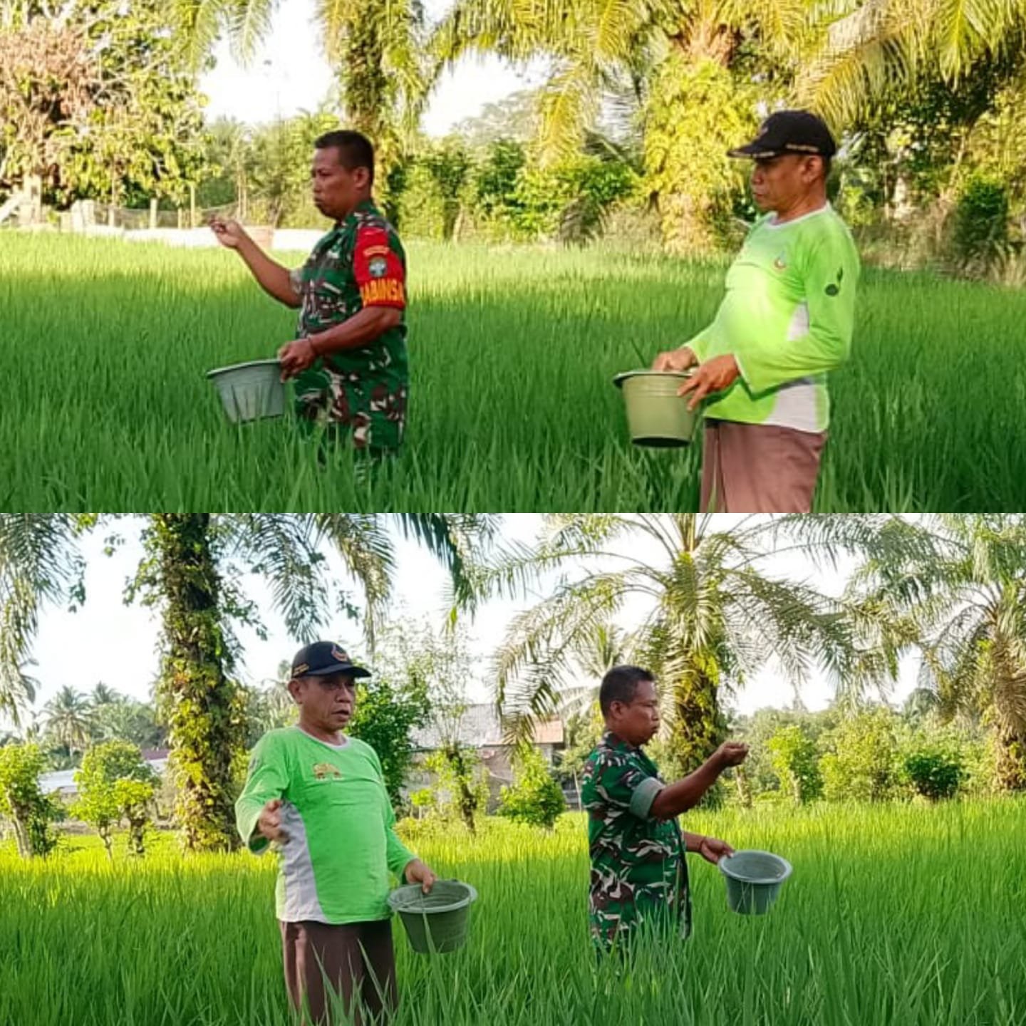 Kegiatan ini merupakan bagian dari komitmen TNI Angkatan Darat, khususnya jajaran Kodim 0105/Aceh Barat, dalam mendukung program pemerintah di bidang ketahanan pangan. Dengan turun langsung ke sawah, Babinsa tidak hanya memberikan semangat kepada petani, tetapi juga memastikan proses pemupukan dilakukan dengan baik sehingga hasil panen dapat maksimal.