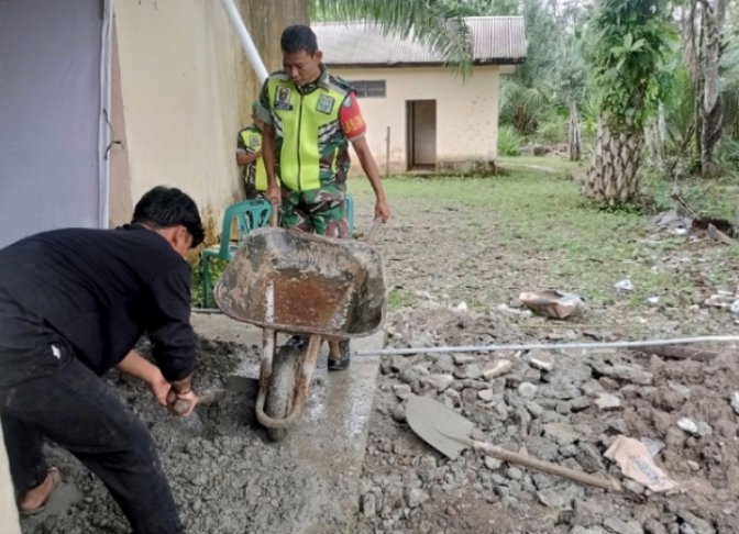 Sertu Mukhlis dalam kegiatannya mengatakan, sebagai Babinsa harus aktif dalam berbagai kegiatan di wilayah. Salah satunya membantu warga dalam pembuatan lantai teras rumah, Katanya
