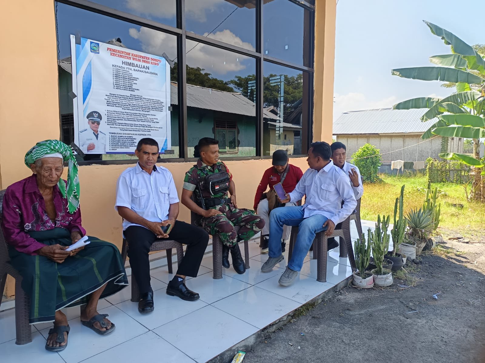 Dompu, NTB – Dalam upaya meningkatkan keamanan dan ketertiban lingkungan, Babinsa Koramil 1614-01/Dompu menggelar kegiatan Komunikasi Sosial (Komsos) pada Selasa, 6 Januari 2026, pukul 09.15 WITA. Kegiatan ini dilaksanakan di halaman Kantor Desa Riwo dan dihadiri oleh Kepala Desa, staf desa, serta warga setempat.