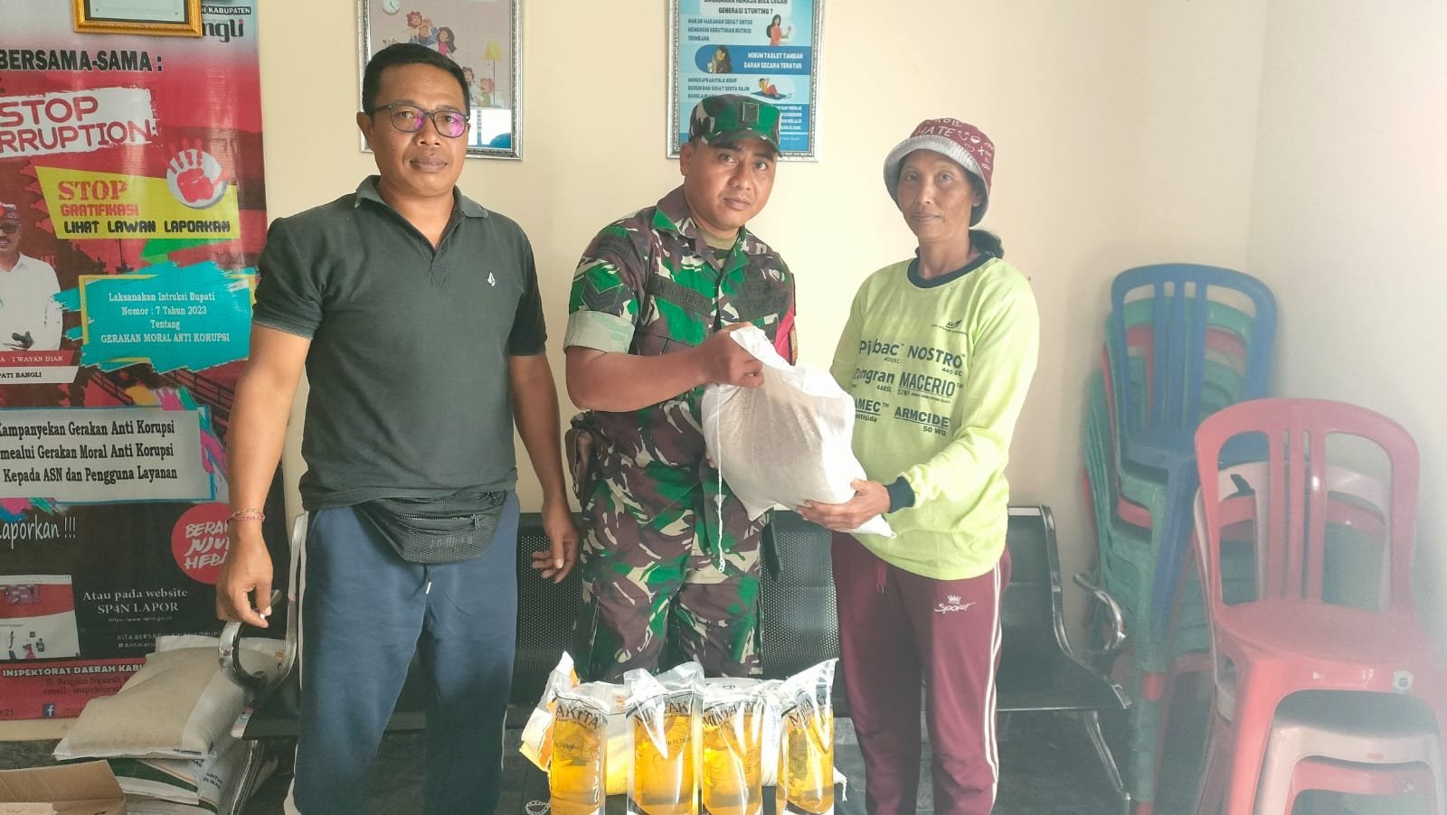 Sinergi Koramil 1626-04/Kintamani dalam Pendampingan Pembagian Beras dan Minyak Goreng untuk Masyarakat
