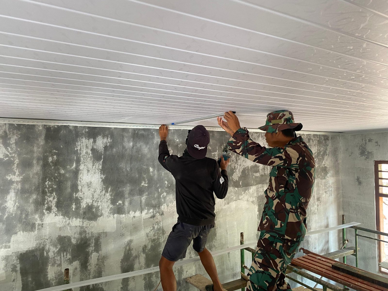 Proses pengerjaan dilakukan dengan penuh kehati-hatian untuk memastikan plafon terpasang kuat dan rapi. Kopda Viktorius, salah satu personel Satgas TMMD, menegaskan bahwa kerja sama antara TNI dan masyarakat sangat berperan dalam kelancaran proyek ini.