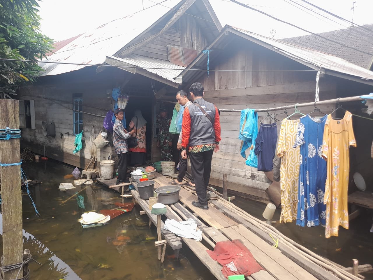 MARTAPURA – Babinsa Koramil 06/Mtp Sertu Muhammad Supianoor bersama petugas kesehatan dan aparat Desa melakukan kunjungan door-to-door ke rumah-rumah warga yang terdampak banjir di Desa Tangkas, Kecamatan Martim, Kabupaten Banjar, Kamis (13/02).