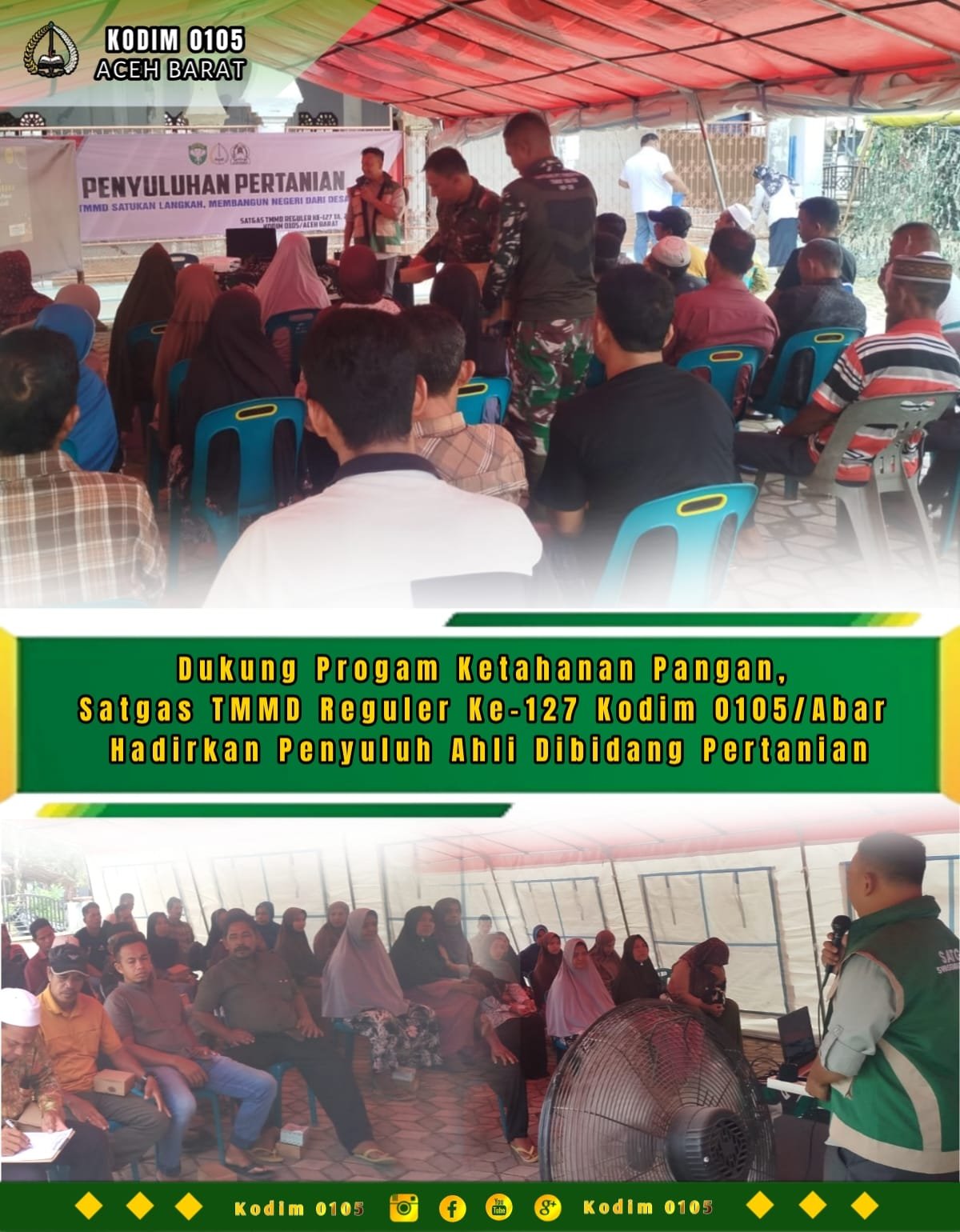 Melalui sinergi TMMD Reguler ke-127 Kodim 0105/Aceh Barat bersama Dinas Pertanian ini, diharapkan Desa Pasi Aceh semakin maju, mandiri, serta mampu berkontribusi dalam menyukseskan program swasembada pangan nasional.(0105).