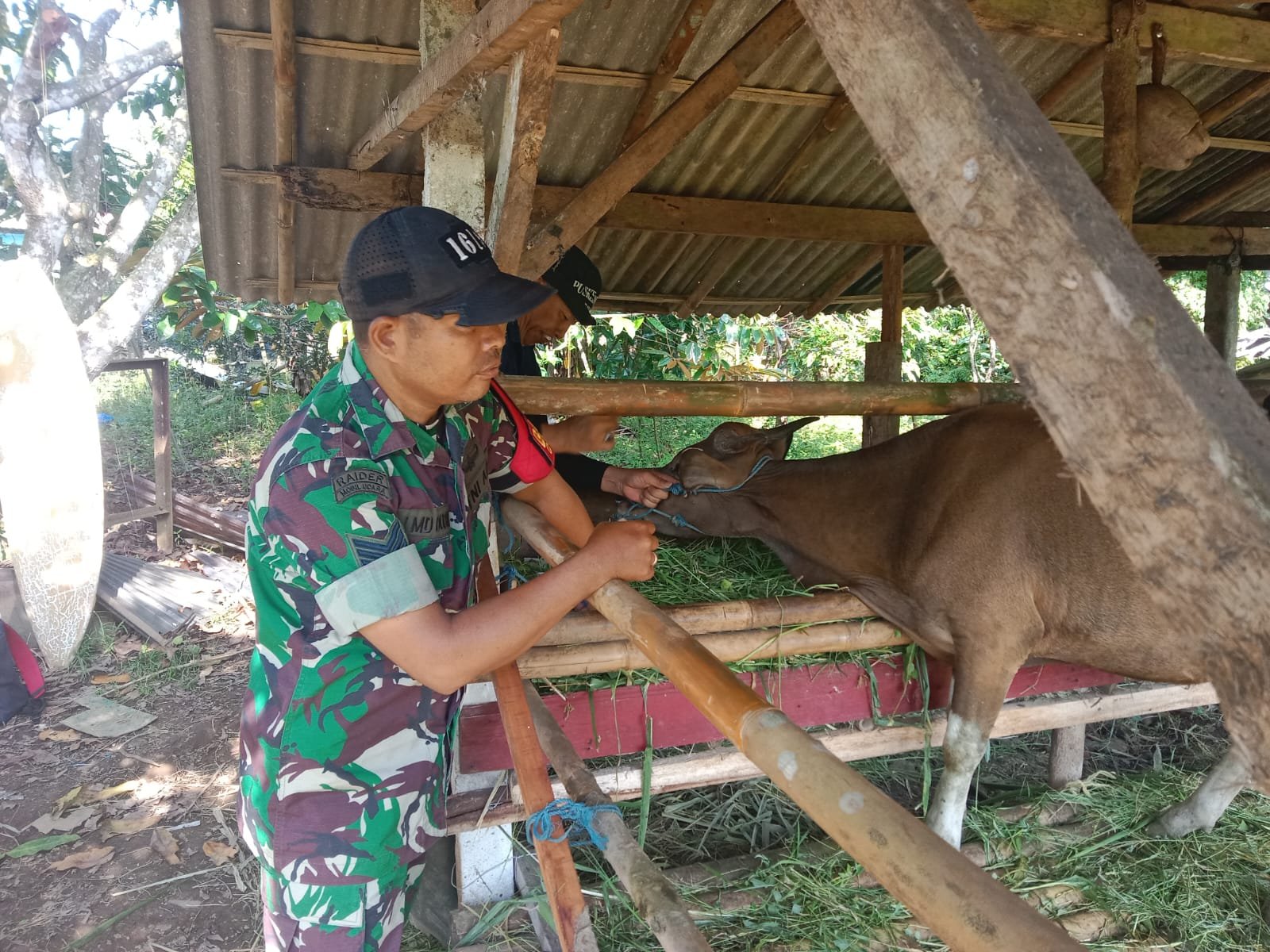 Tabanan – Babinsa Desa Jegu, Serma I Made Duduk, berkolaborasi dengan UPTD Puskeswan I Penebel dalam melaksanakan program vaksinasi untuk ternak sapi guna pengendalian Penyakit Mulut dan Kuku (PMK) serta mendukung ketahanan pangan nasional. Kegiatan ini berlangsung pada Kamis, 18 Desember 2025, di Desa Jegu, Kabupaten Tabanan.