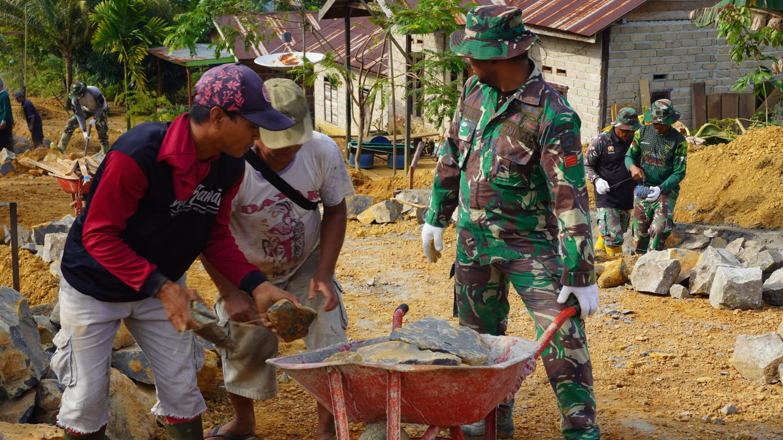Dengan semangat yang tinggi, para anggota Satgas TMMD dan warga saling bekerja sama di lokasi pembangunan. Mereka terlibat dalam berbagai tahap pengerjaan, mulai dari menyiapkan material hingga pemasangan siring jalan, sesuai dengan rencana yang telah ditetapkan.