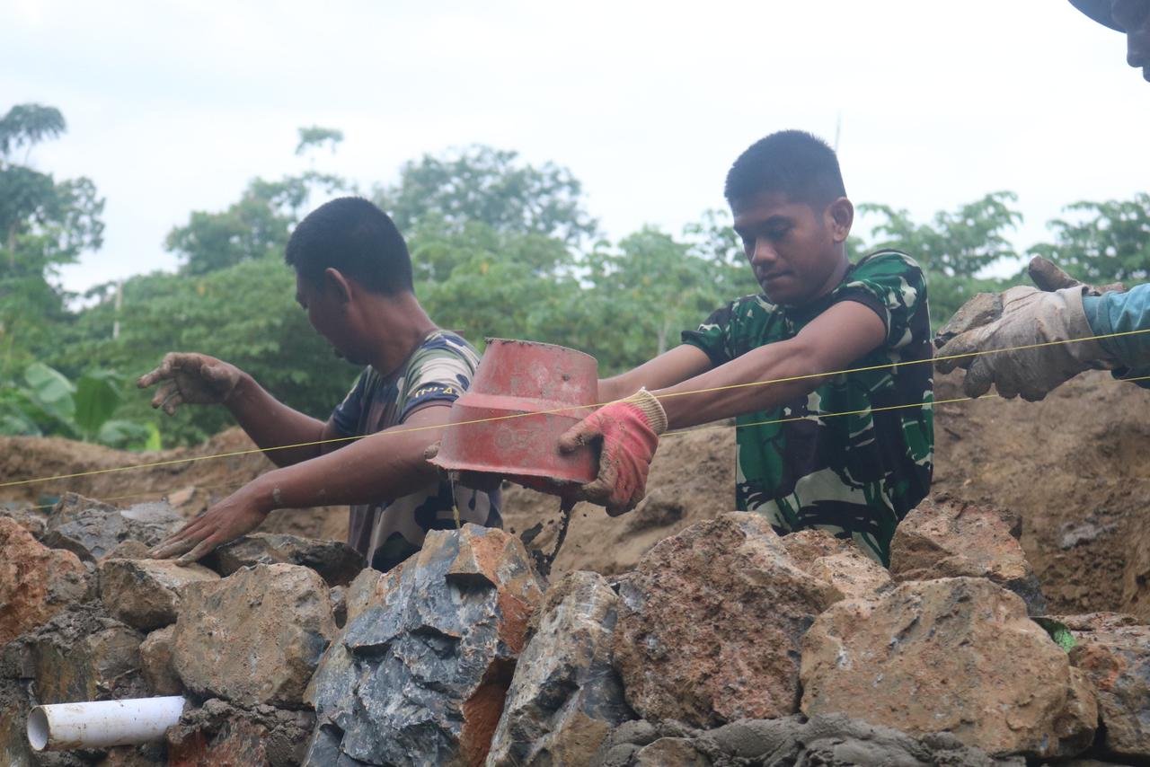 Kolaborasi yang terjalin antara TNI dan masyarakat ini merupakan wujud nyata dari kemanunggalan TNI dengan rakyat, yang menjadi asas penting dalam program TMMD untuk mempercepat pembangunan di daerah. Talud yang sedang dibangun diharapkan dapat meningkatkan keamanan lingkungan serta mendukung konektivitas dan aktivitas sehari-hari warga.