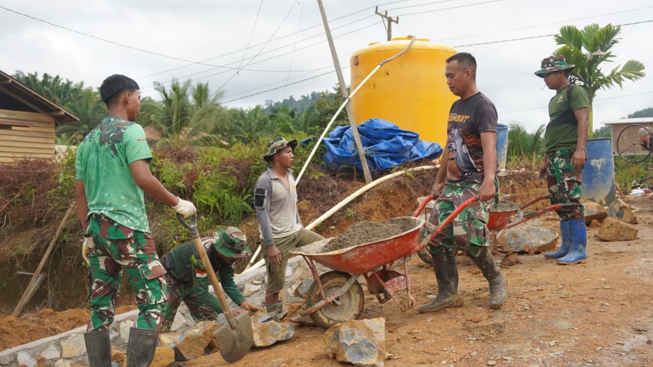Sinergi TNI dan Masyarakat Percepat Pembangunan Jalan di Desa Tri Buana