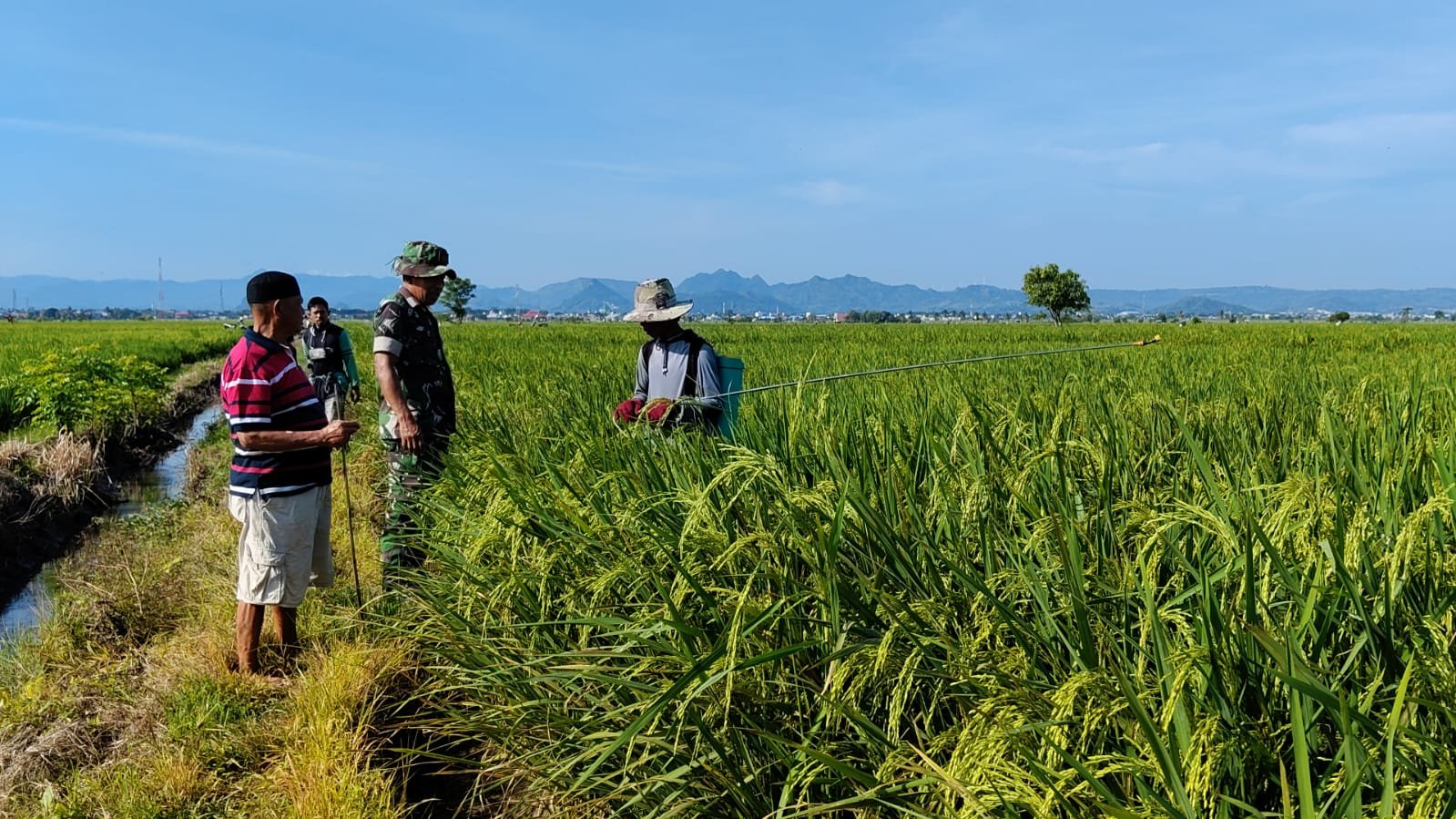 Kegiatan ini berlangsung di tengah hamparan hijau padi yang siap panen, bertujuan untuk menjaga kesehatan tanaman agar terhindar dari hama dan penyakit yang kerap mengintai. Menurut Serma Nursalam, kehadirannya di lapangan bukan hanya sebagai formalitas, melainkan untuk memberikan dukungan moral dan teknis bagi para petani. “Penyemprotan tepat dosis sangat penting untuk memastikan bulir padi berkualitas, sehingga hasil panen mereka melimpah,” ungkapnya.