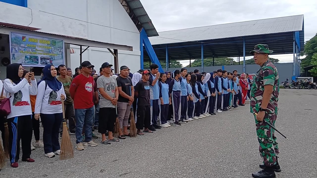 Poso, 11 April 2025 – Kodim 1307/Poso menggelar kegiatan Jumat Bersih yang melibatkan sinergi antara TNI-Polri, Aparatur Sipil Negara (ASN), dan masyarakat di kawasan GOR Pusalemba, Jalan Brigadir Jendral Katamso, Kelurahan Lawangan Tawongan, Kecamatan Poso Kota Utara, Kabupaten Poso. Kegiatan dimulai pada pukul 07.15 WITA dan diikuti oleh sekitar 240 peserta.