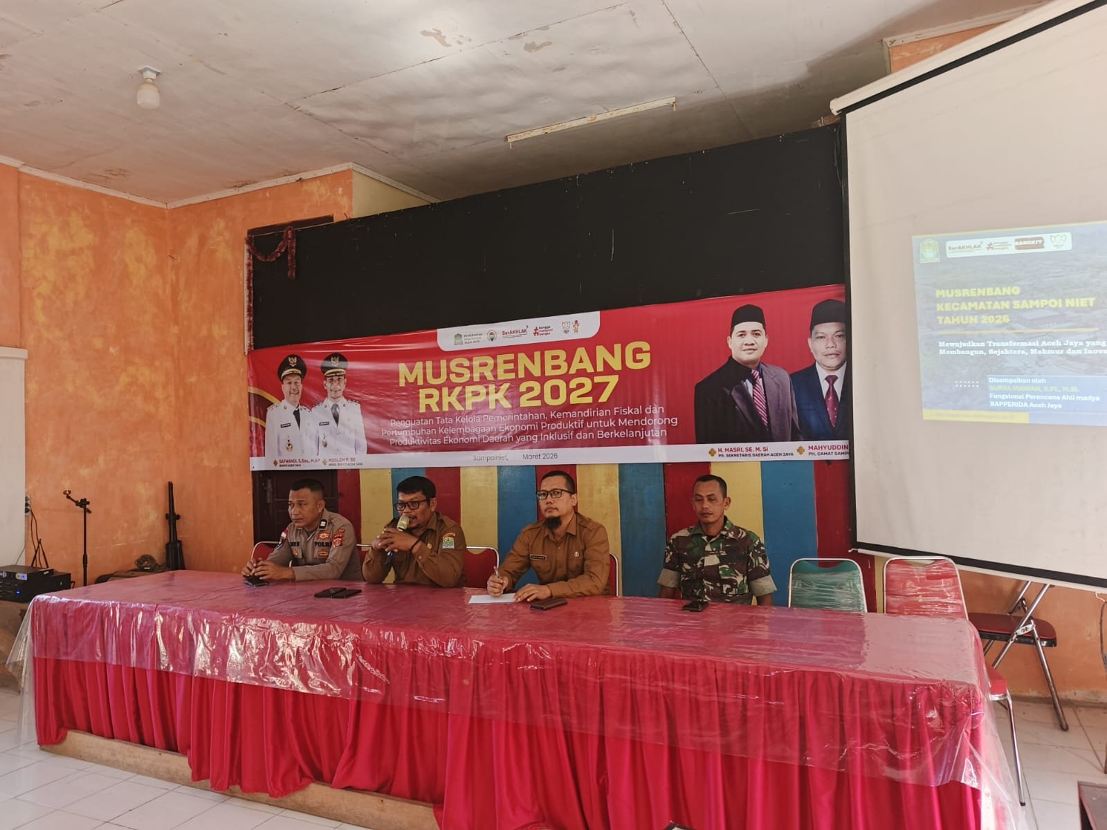 ACEH JAYA – Musyawarah Rencana Pembangunan (Musrenbang) tingkat Kecamatan dalam rangka penyusunan Rencana Kerja Pemerintah Kabupaten (RKPK) Tahun Anggaran 2027 digelar di Kantor Serba Guna Lhok Kruet, Kecamatan Sampoiniet, Senin (02/03/2026) pukul 09.00 WIB.