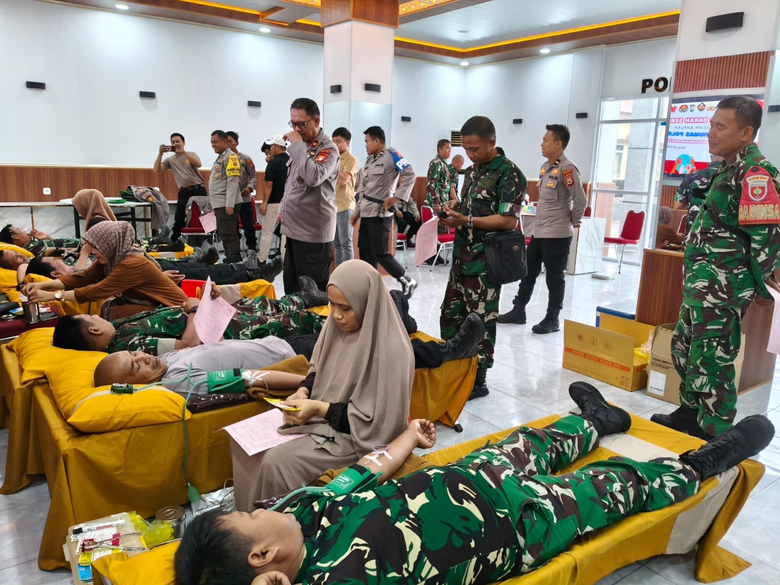 Sidrap – Personel Komando Distrik Militer (Kodim) 1420/Sidrap menunjukkan semangat sinergi dan kepedulian sosial dengan mengikuti kegiatan donor darah serentak yang diselenggarakan dalam rangka memperingati Hari Jadi Hubungan Masyarakat (Humas) Polri ke-74 tahun 2025.