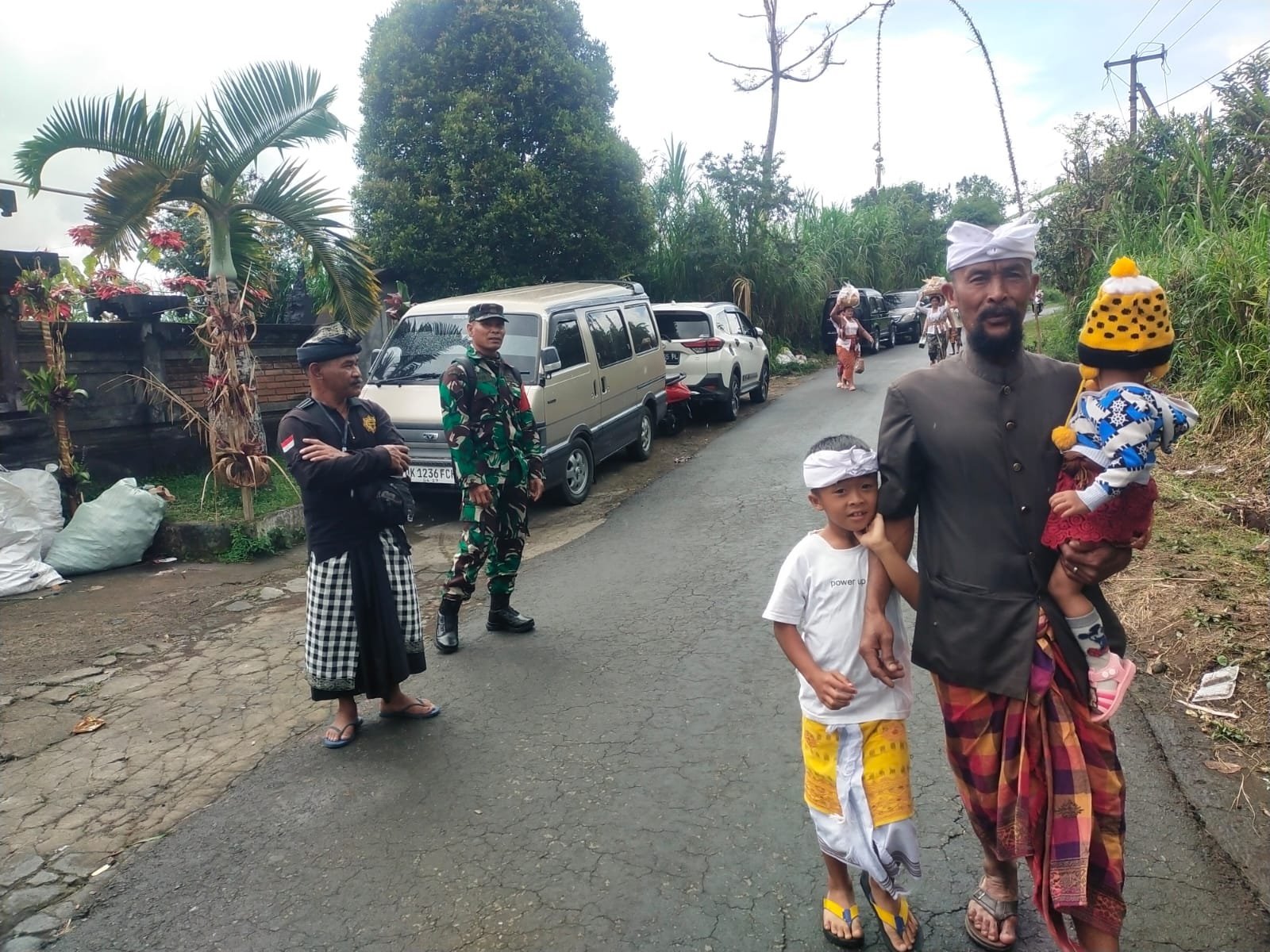 Serka Wayan Suastika tampak ikut membantu pengaturan arus lalu lintas.Tujuannya untuk memberikan rasa aman serta nyaman kepada masyarakat yang beraktivitas dan mengantisipasi terjadinya gangguan keamanan sehingga upacara adat dapat berjalan lancar.