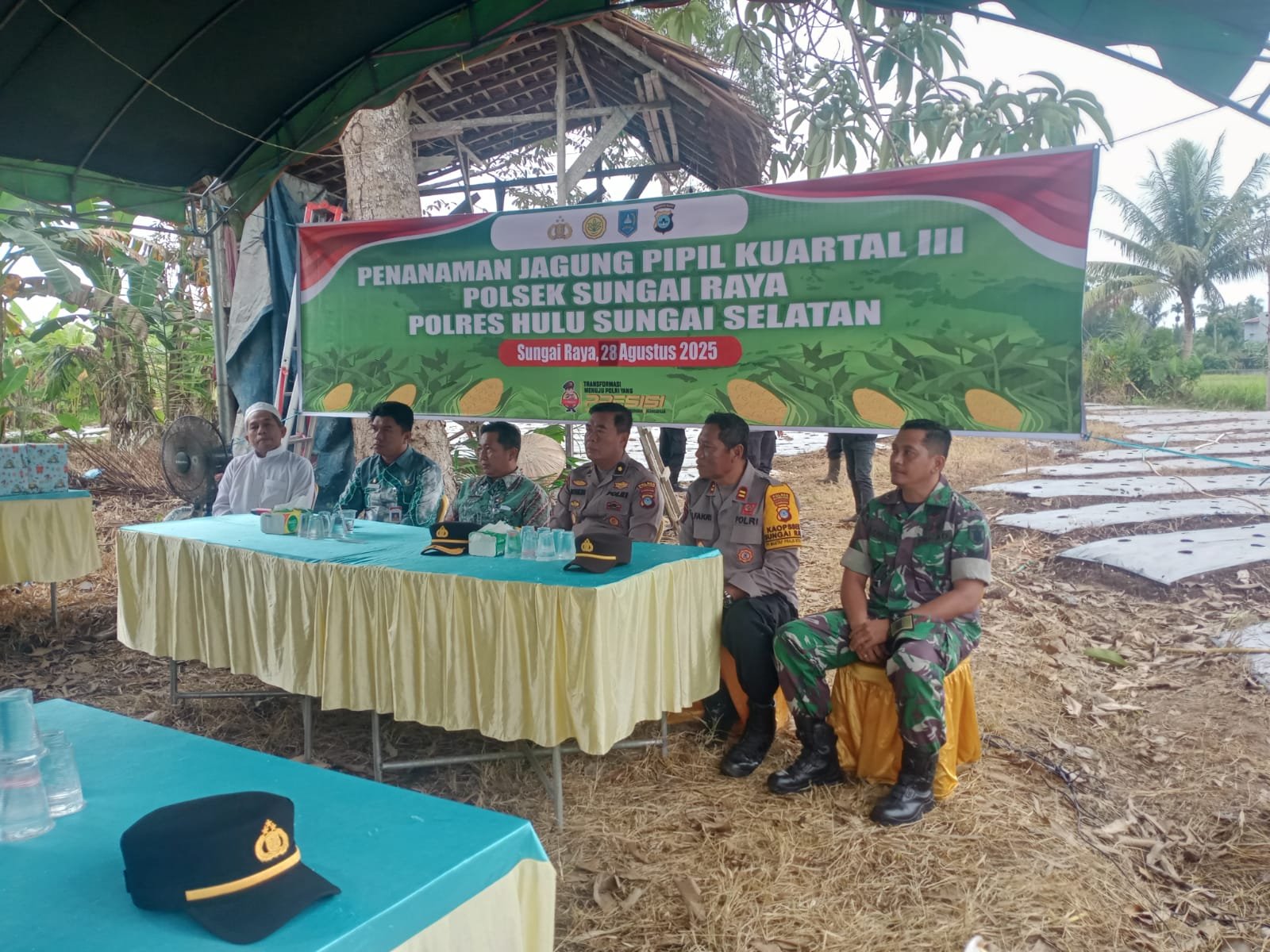 HULU SUNGAI SELATAN – Jabarkan sinergitas dengan stakeholder diwilayah binaan jajaran Bintara Pembina Desa (Babinsa) Koramil 1003-05/Sungai Raya yang dipimpin oleh Serma Sodiqul Zakaria hadir dan ikuti kegiatan penanaman jagung pipil Kuartal III yang diprakasai dari Polsek Sungai Raya di lahan pertanian Desa Baru Kecamatan Sungai Raya Kabupaten Hulu Sungai Selatan (HSS). Kamis (29/8/25) sore waktu setempat