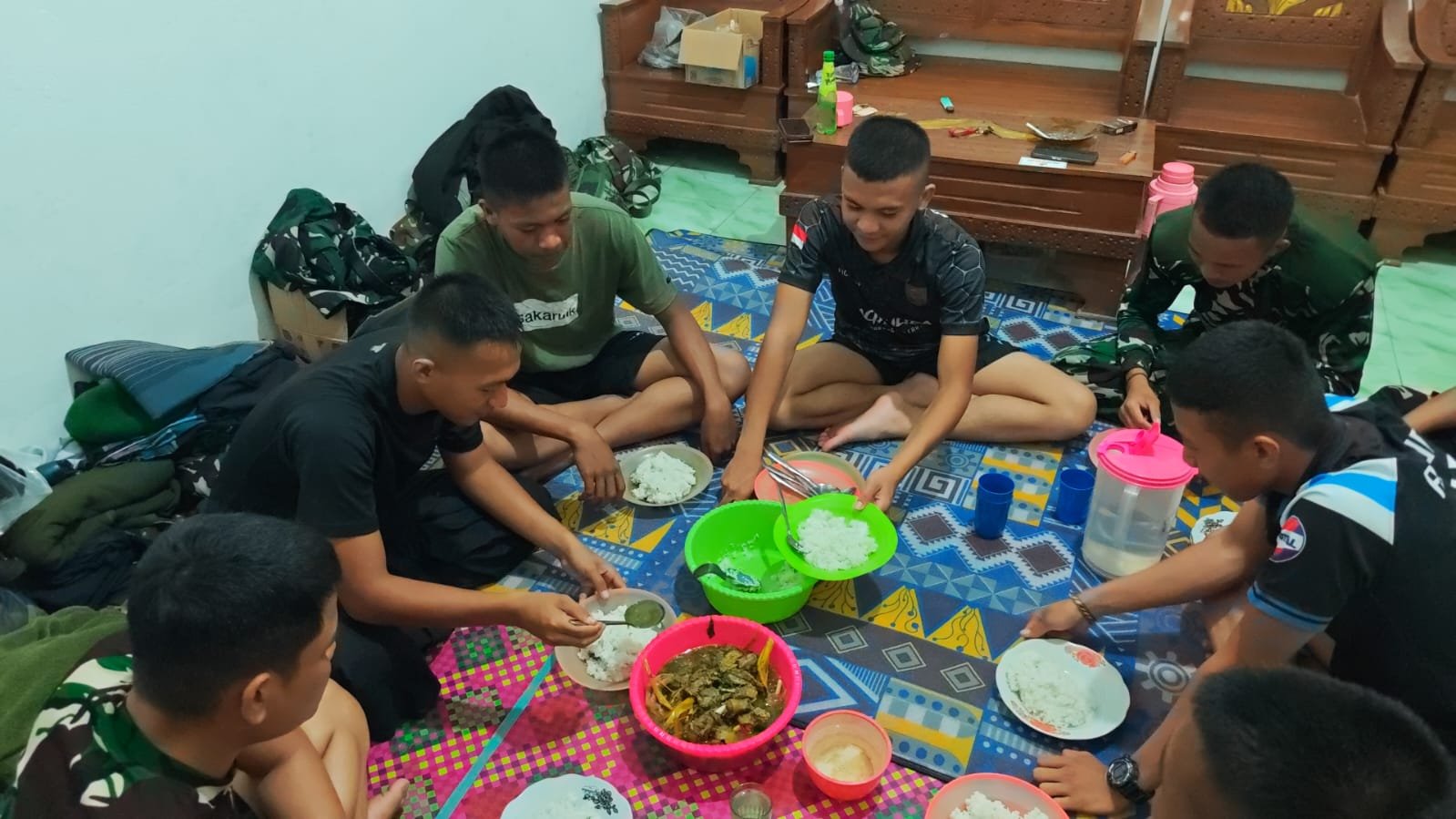 Kegiatan makan bersama ini melibatkan personel Satgas TMMD yang berasal dari berbagai satuan TNI, setelah menyelesaikan tugas pembangunan dan kegiatan sosial di lokasi TMMD. Momen ini menjadi kesempatan yang baik untuk memperkuat hubungan antar anggota di lapangan.