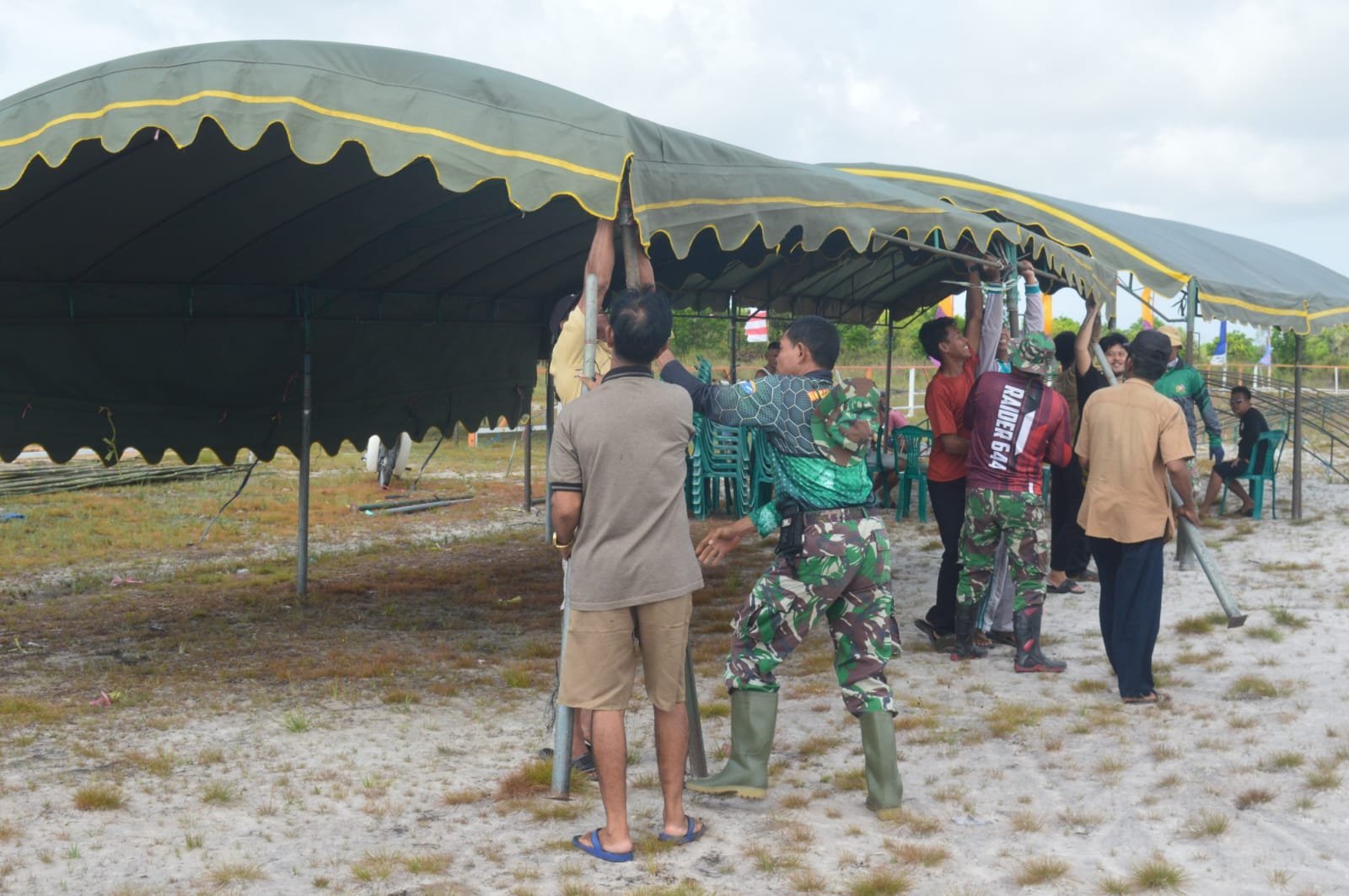 Kegiatan persiapan itu meliputi pemasangan spanduk, persiapan tempat upaca, pembersihan lokasi dan juga pendirian tenda. Dengan penuh antusias anggota Koramil dan warga mulai mendirikan tenda yang rencananya untuk kegiatan upacara pembukaan TMMD 123.