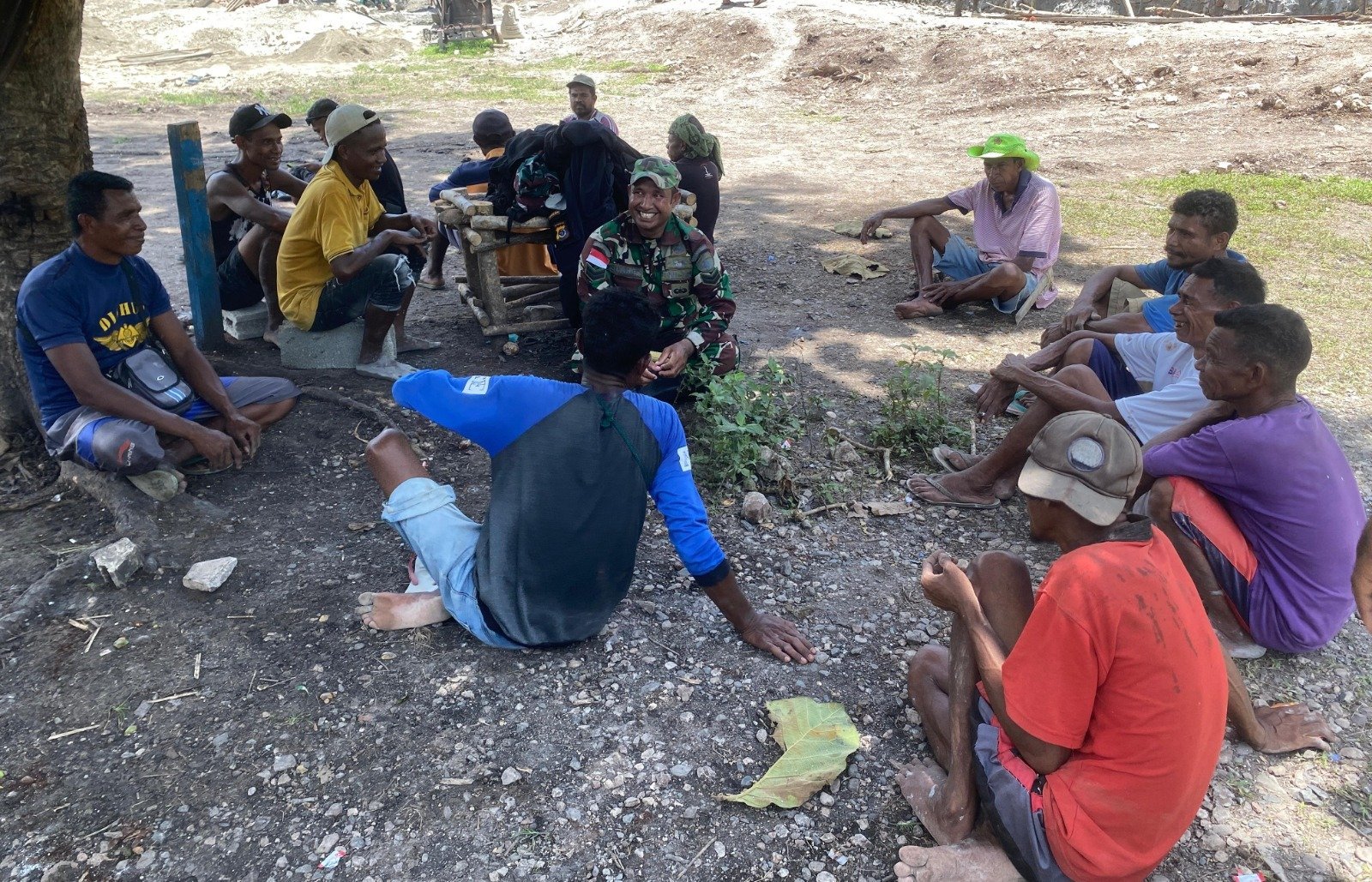 NTT-KEFAMENANU., Kamis 27 Februari 2025., Keakraban antara anggota Satgas TMMD Ke-123 Kodim 1618/TTU dan masyarakat Desa Lanaus semakin terlihat. Di luar tugas utama membangun infrastruktur desa, prajurit TNI juga aktif menjalin komunikasi dengan warga, berbagi tawa, dan menikmati kebersamaan dalam suasana penuh kekeluargaan.