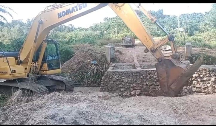 Bombana – Memasuki hari ketujuh pelaksanaan TNI Manunggal Membangun Desa (TMMD) ke-124 Tahun Anggaran 2025, Satgas TMMD Kodim 1431/Bombana mengerahkan alat berat untuk melakukan penimbunan galian pondasi Jembatan Morengke di Desa Morengke, Kecamatan Matausu, Kabupaten Bombana, Sulawesi Tenggara, Selasa (13/5/2025). Langkah ini dilakukan guna mempercepat proses pembangunan infrastruktur yang menjadi program utama TMMD di wilayah tersebut.
