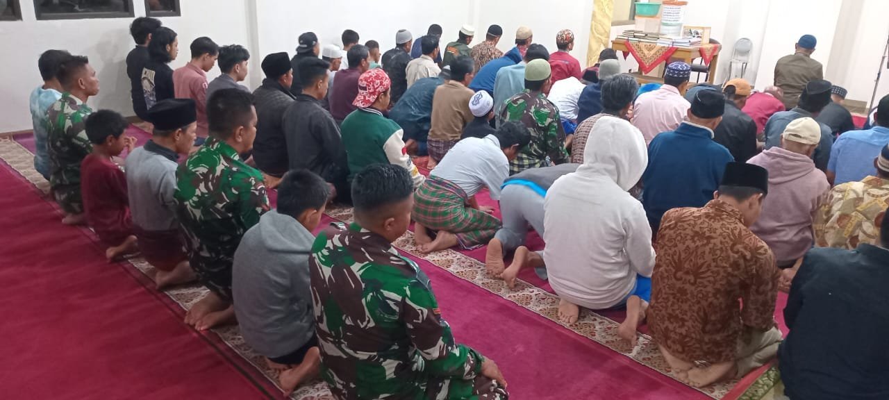 Agam – Anggota Satgas TMMD ke-123 Kodim 0304/Agam tingkatkan ibadah dan menjalin kebersamaan dengan melaksanakan shalat tarawih dan tadarus bersama warga di Jorong ilalang, Nagari Balingka, Kabupaten Agam.