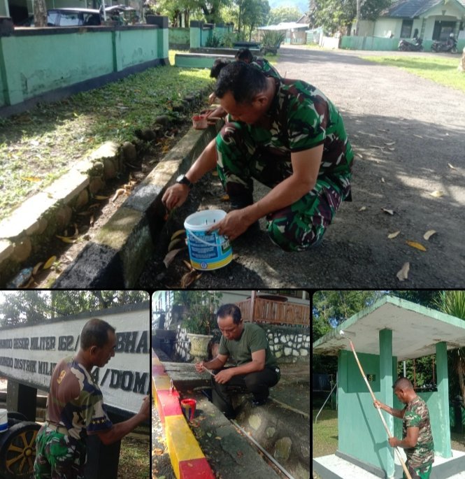 NTB-Dompu. Untuk menciptakan kenyamanan dan keindahan di lingkungan Kodim 1614/Dompu, jajaran pok Tuud melaksanakan kegiatan pembersihan dan pengecetan pangkalan, Kelurahan Dorotangga Kecamatan Dompu Kabupaten Dompu. Senin ( 10/03/2025)
