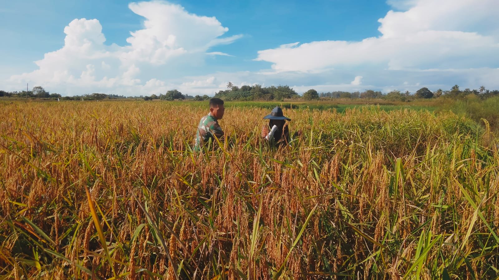 Ibu Salmah pemilik tanaman padi mengucapkan ribuan Terima kasih kepada babinsa yang telah meluangkan waktu untuk membantu kami panen padi sehingga pekerjaan kami dapat selesai lebih awal, ujarnya.