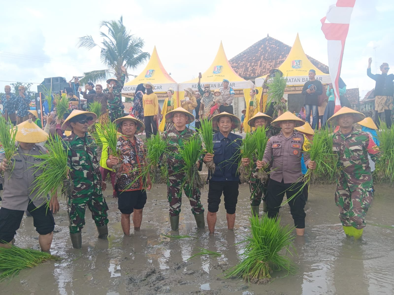 Tuban – Gerakan Tanam Percepatan Luas Tambah Tanam (LTT) bersama Koramil 0811/12 Bancar yang mana salah satu strategi untuk mewujudkan swasembada pangan. Dengan dikemas melalui Festival Tandur Slikasan atau tanam padi bersama yang merupakan tradisi adat di Desa Pugoh, Kec. Bancar, Kab. Tuban, kegiatan ini dipimpin langsung oleh Danramil Kapten Arh Ali Mubdi didampingi oleh Kades Ibu Kusyanti. Kamis (09/01/2025)