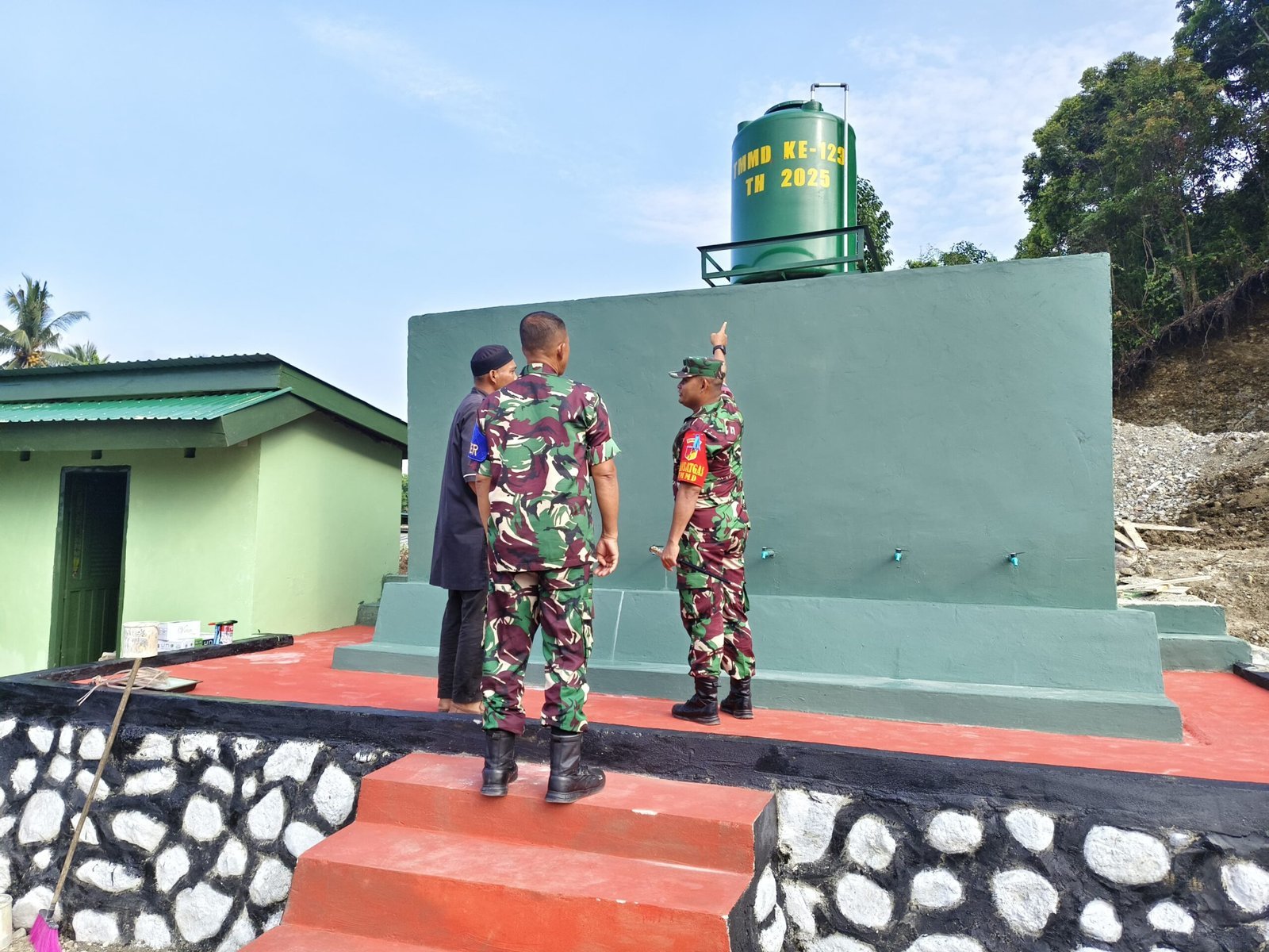 Dalam kunjungannya, Dansatgas memastikan bahwa pembangunan bak penampungan air telah mencapai tahap finishing. Meskipun progres pembangunan berjalan dengan baik, Letkol Inf Alzaki tetap memberikan beberapa arahan perbaikan di beberapa titik kepada anggota Satgas TMMD agar hasilnya lebih maksimal dan sesuai standar.