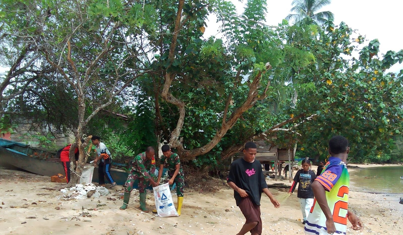 Kaimana – Sebagai bentuk kepedulian terhadap kebersihan lingkungan, Satgas TMMD 127 Kodim 1804/Kaimana, bersama anggota TNI AL, melaksanakan kegiatan gotong royong untuk membersihkan pantai di Kampung Sisir pada 28 Februari 2026.
