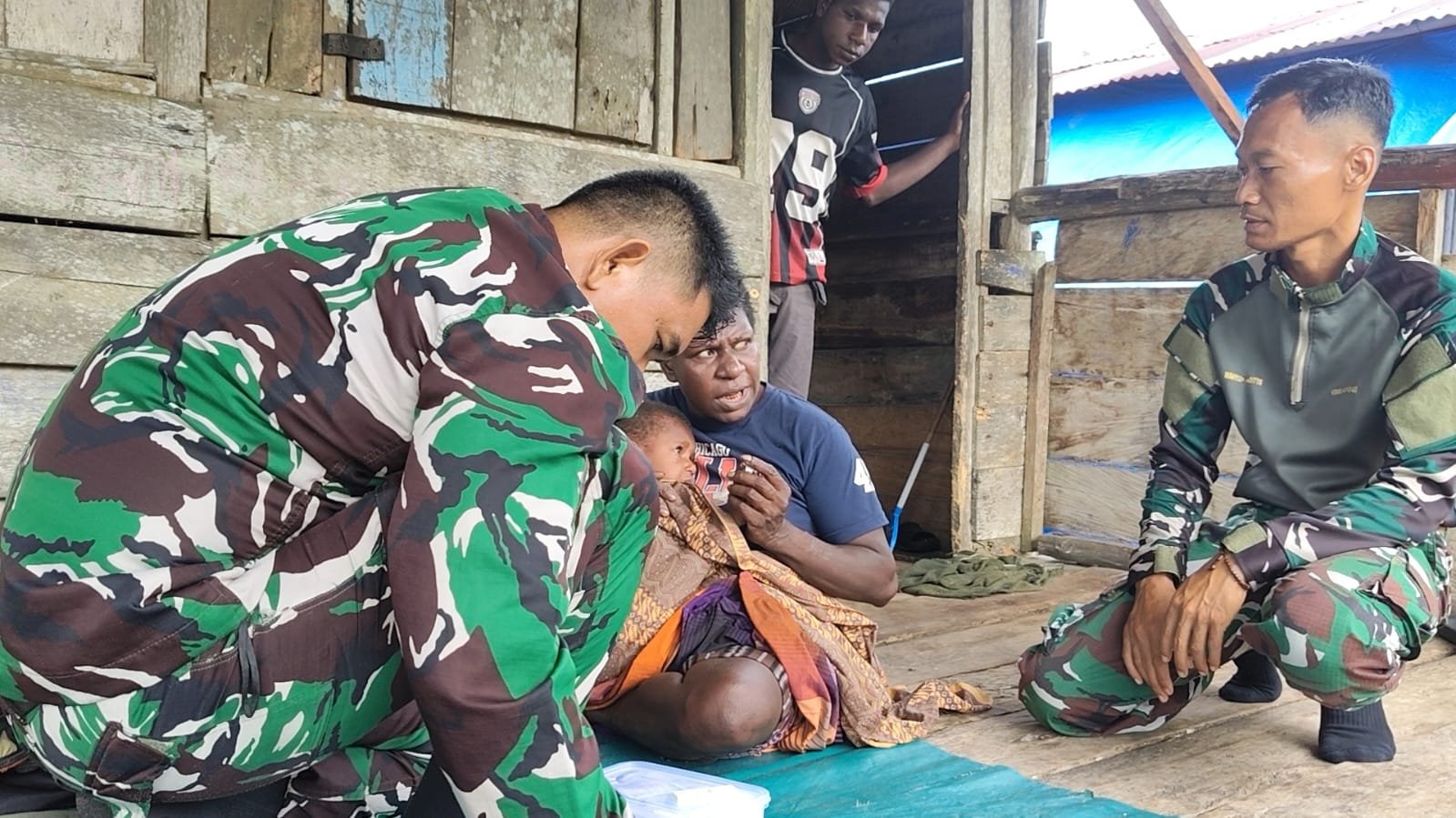 Mimika — Komitmen Satgas TMMD ke-128 Kodim 1710/Mimika untuk memberikan pelayanan yang optimal kepada masyarakat semakin terlihat melalui kegiatan kesehatan keliling yang dilaksanakan di Kampung Keakwa.