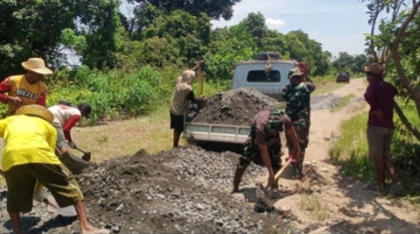BARITO KUALA – Suara cangkul dan gemeretak batu pecah terdengar bersahutan di Desa Tumih, Kecamatan Wanaraya. Di bawah terik matahari, prajurit TNI bersama warga setempat terus melanjutkan pengerasan jalan yang menjadi salah satu sasaran utama TMMD Ke-126 Kodim 1005/Barito Kuala.