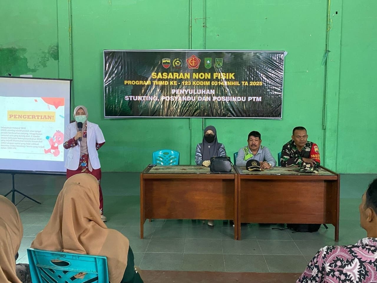 INHIL – Dalam rangka mendukung sasaran non-fisik program TNI Manunggal Membangun Desa (TMMD) ke-123, Kodim 0314/Inhil menggelar penyuluhan kesehatan tentang Posyandu, Posbindu dan Penyakit Tidak Menular (PTM) di Gedung Serba Guna “Tuah Negri”, Desa Mumpa, Kecamatan Tempuling, pada Kamis (6/3/2025).