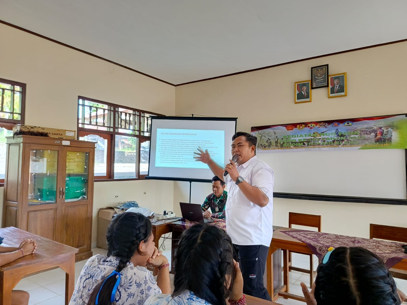 Buleleng, Bali – Suasana penuh semangat menyelimuti Ruang Lab. IPA SMPN 5 Depeha pada Rabu pagi. Dalam rangka program non-fisik Tentara Manunggal Membangun Desa (TMMD) ke-124, Kodim 1609/Buleleng bekerja sama dengan Kesbangpol Kabupaten Buleleng menggelar kegiatan Sosialisasi Wawasan Kebangsaan yang bertujuan menanamkan nilai-nilai cinta tanah air kepada generasi muda.