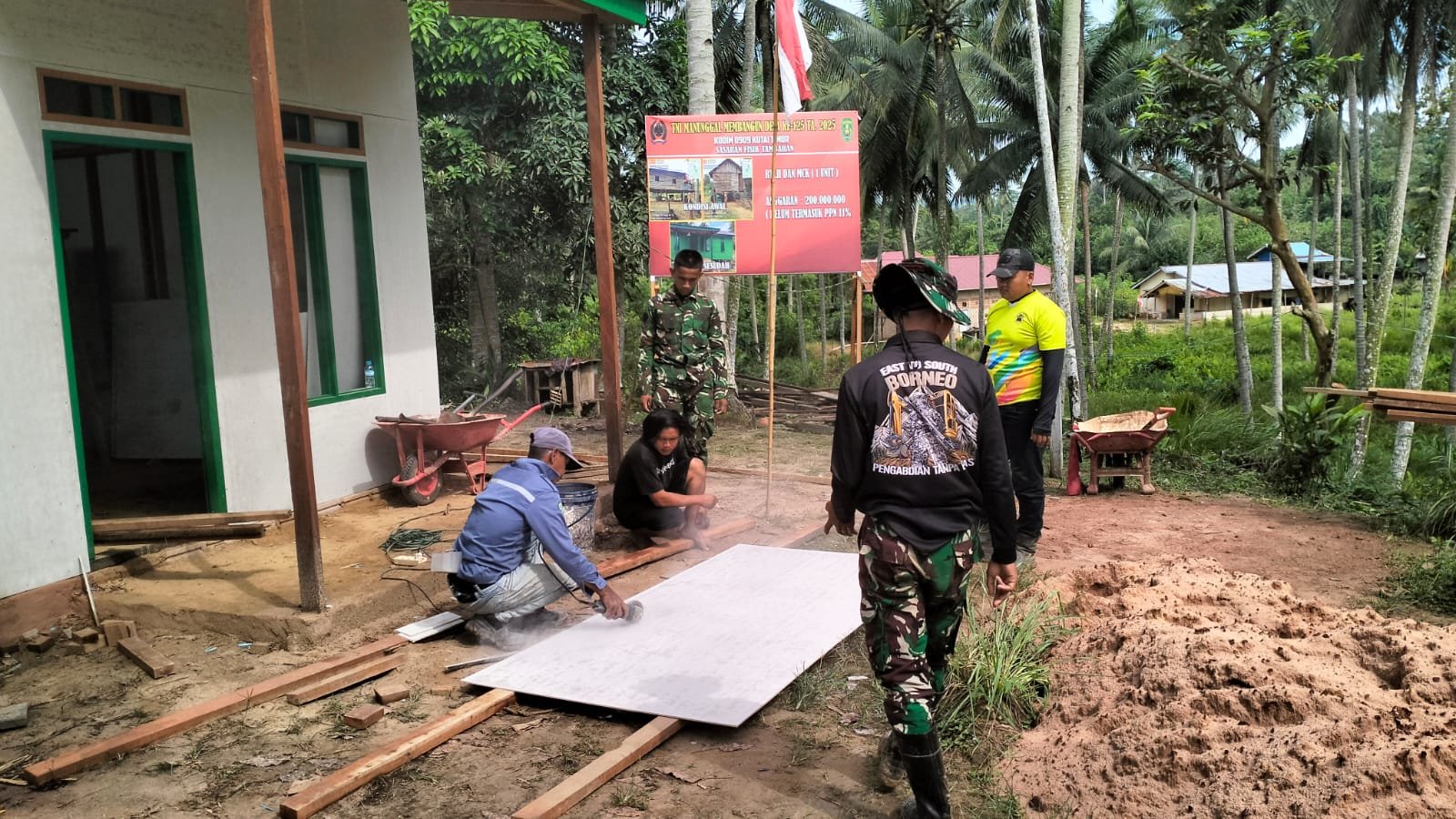 Sejak 23 Juli 2025, rumah milik Rahman, seorang warga kurang mampu di pelosok desa tersebut, menjadi salah satu sasaran fisik tambahan TMMD. Dinding yang sebelumnya lapuk dan nyaris roboh, kini telah diganti dengan klasiboard yang kokoh. Sekat antar-ruangan mulai terbentuk, menyulap hunian lama menjadi tempat tinggal yang lebih layak dan manusiawi.