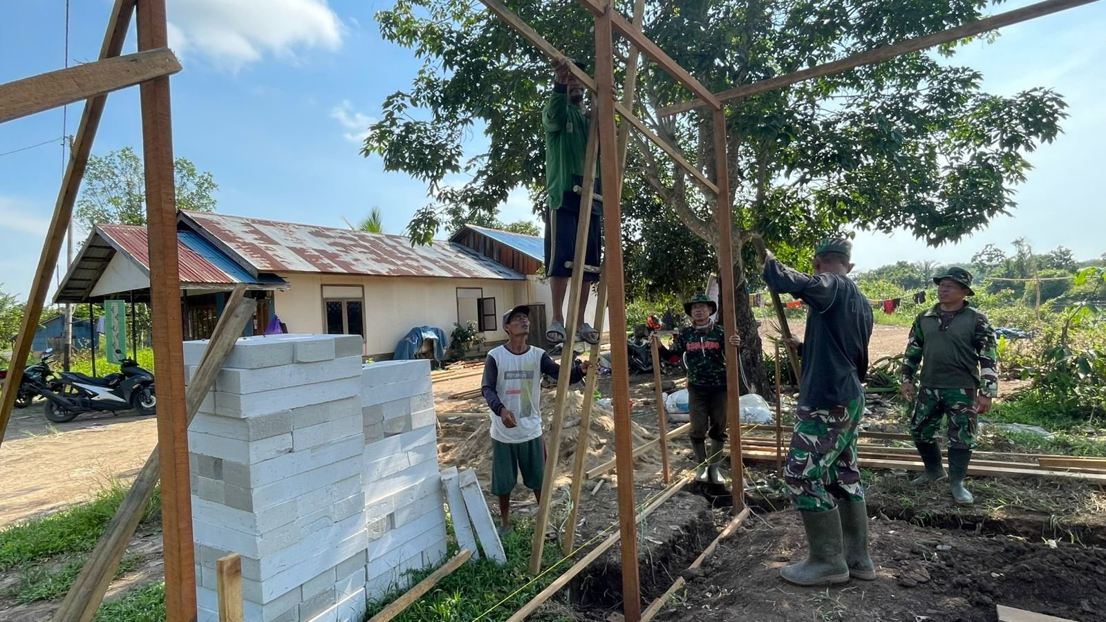“Nampak jelas semangat gotong royong di lapangan. TNI dan masyarakat saling bahu membahu, mulai dari mengaduk semen, menata bata, hingga mendirikan tiang bangunan,” ujarnya.