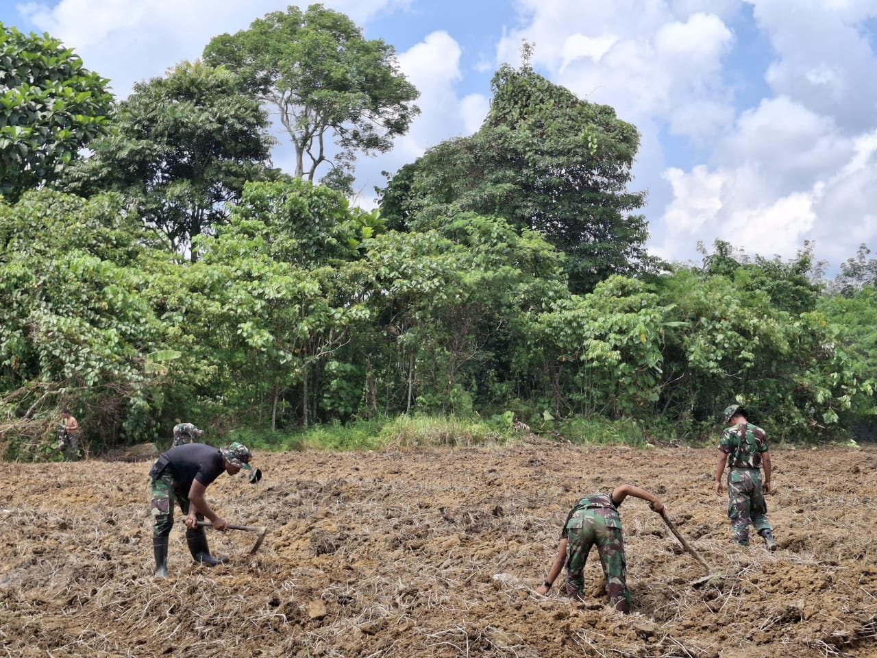 Barito Utara – Program ketahanan pangan menjadi salah satu fokus utama pelaksanaan TMMD ke-126 Kodim 1013/Mtw di Desa Jamut, Kecamatan Teweh Timur. Selain membuka lahan produktif, Satgas TMMD juga aktif memberikan pendampingan dan penyuluhan pertanian kepada masyarakat setempat.