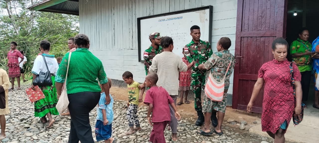 Melalui kegiatan rohani seperti ini, semangat “TNI Bersama Rakyat Membangun dan Berdoa” benar-benar terasa nyata di Kampung Waropko.